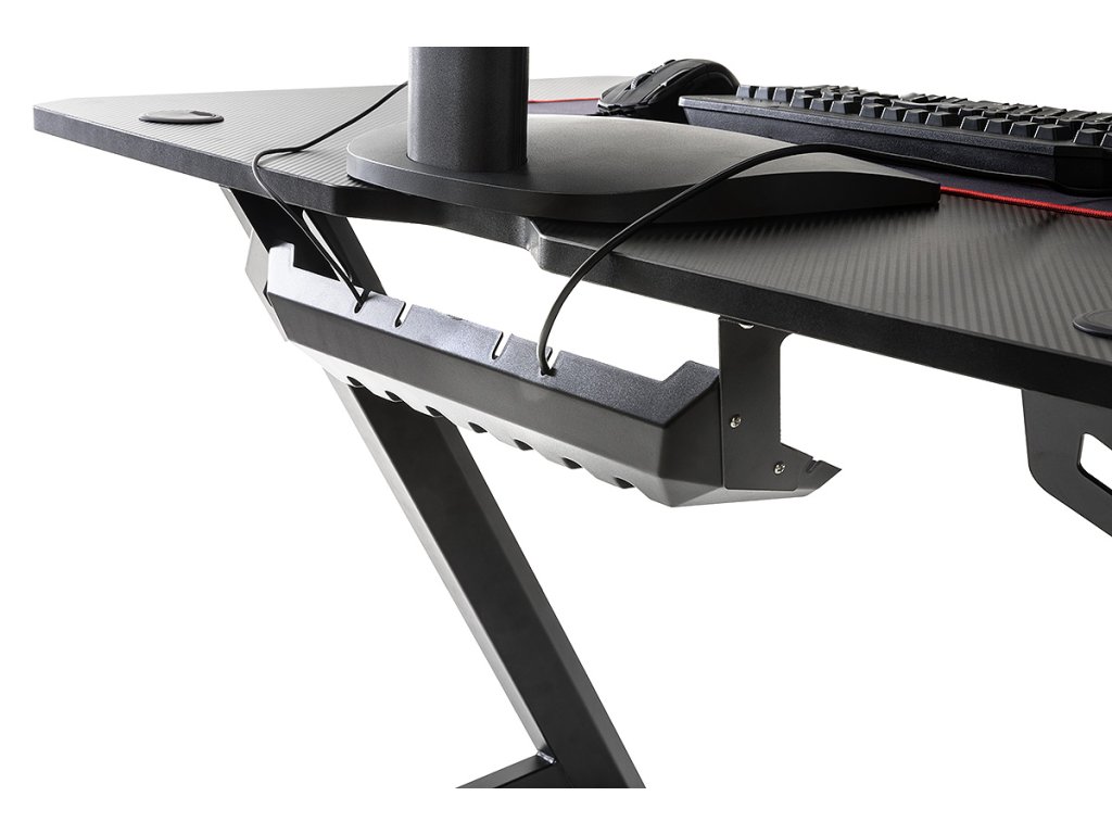 Stôl DX Racer 5 je ideálnym spoločníkom pre hodiny zábavy pri obľúbených počítačových hrách. Je však vhodný aj na prácu. Má čierny kovový rám v tvare písmena Z s práškovou povrchovou úpravou a vysokokvalitnú drevenú stolovú dosku v karbónovom vzhľade. Vďaka elegantnému dizajnu sa hodí do každého interiéru. Súčasťou stola je systém na vedenie káblov, držiak na pohár a držiak na slúchadlá a podložka pod myš.