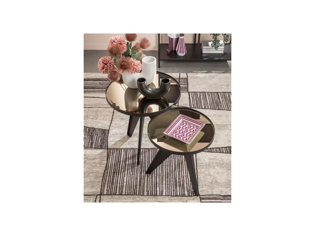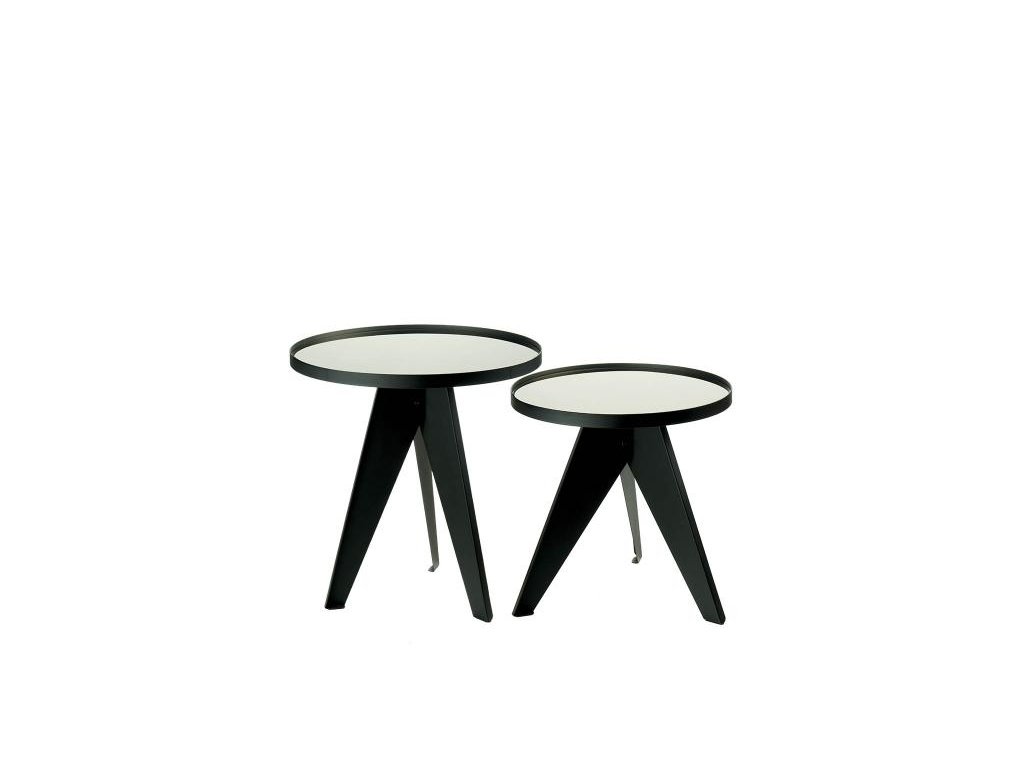 Súprava 2 okrúhlych konferenčných stolíkov z kovu a zrkadlového skla