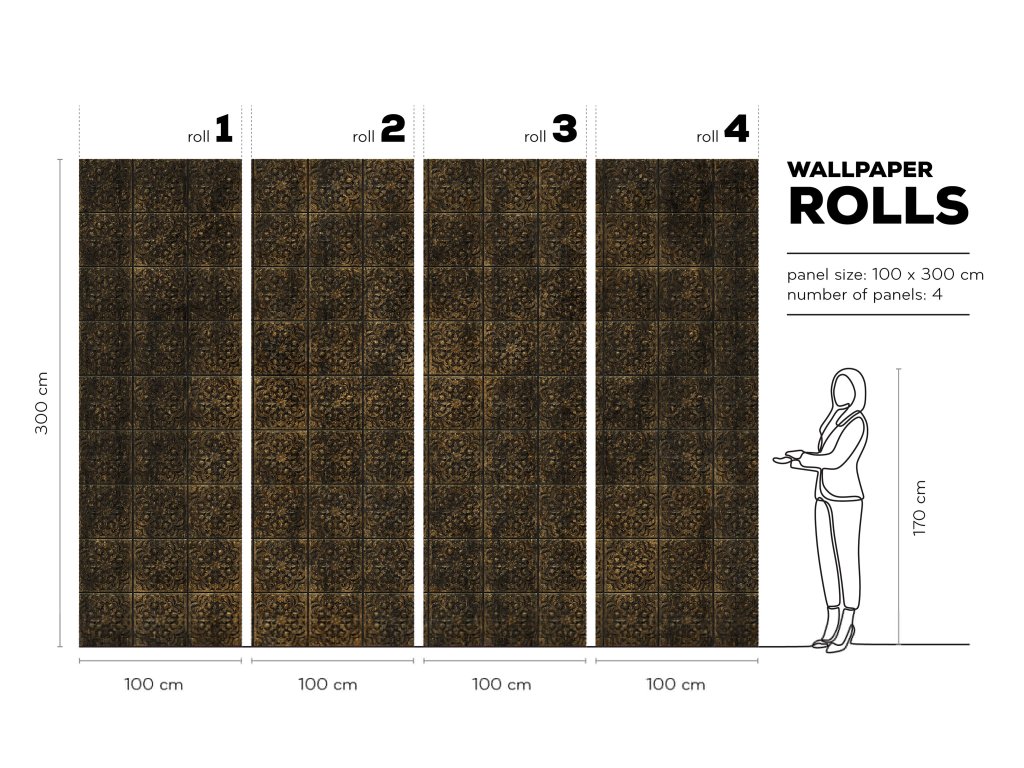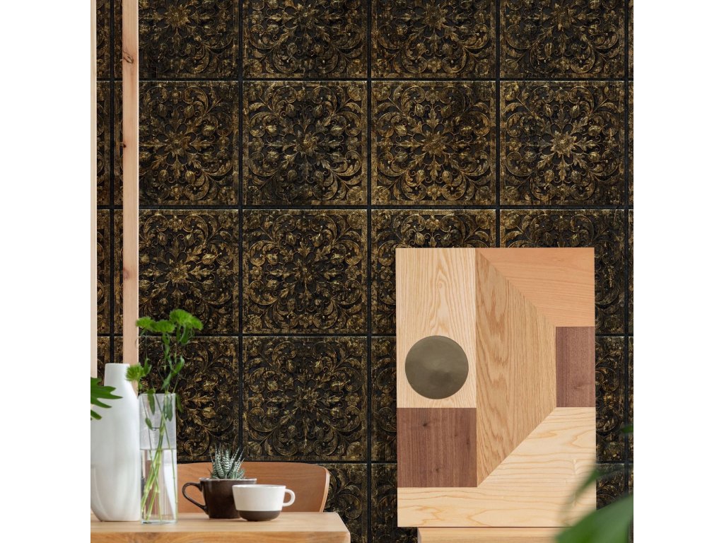 Tapety so zlatými, striebornými a medenými prvkami sú vytvorené vytlačením textúry príslušnou farbou do materiálu.