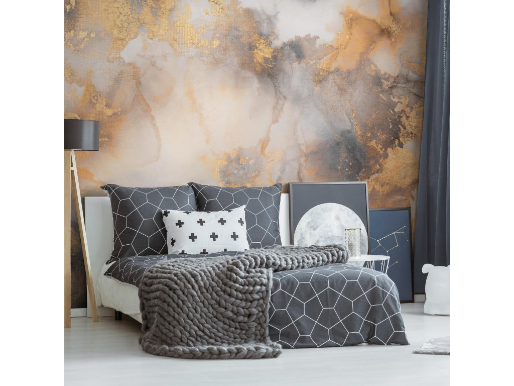 Tapety so zlatými, striebornými a medenými prvkami sú vytvorené vytlačením textúry príslušnou farbou do materiálu.