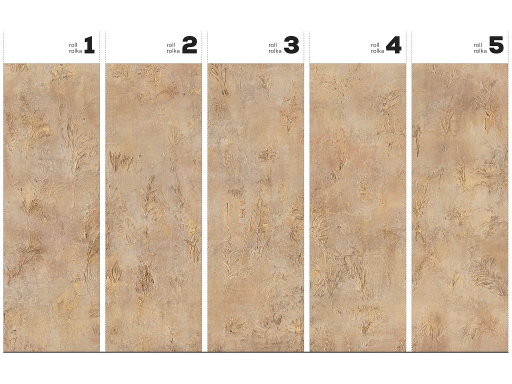 Tapety so zlatými, striebornými a medenými prvkami sú vytvorené vytlačením textúry príslušnou farbou do materiálu.
