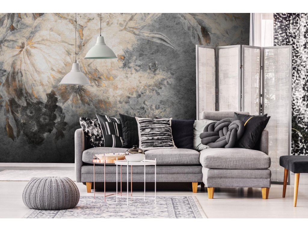Tapety so zlatými, striebornými a medenými prvkami sú vytvorené vytlačením textúry príslušnou farbou do materiálu.
