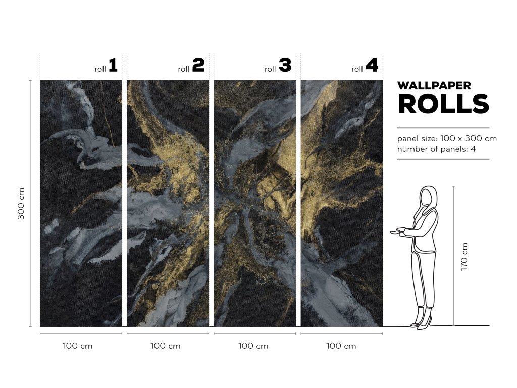 Tapety so zlatými, striebornými a medenými prvkami sú vytvorené vytlačením textúry príslušnou farbou do materiálu.