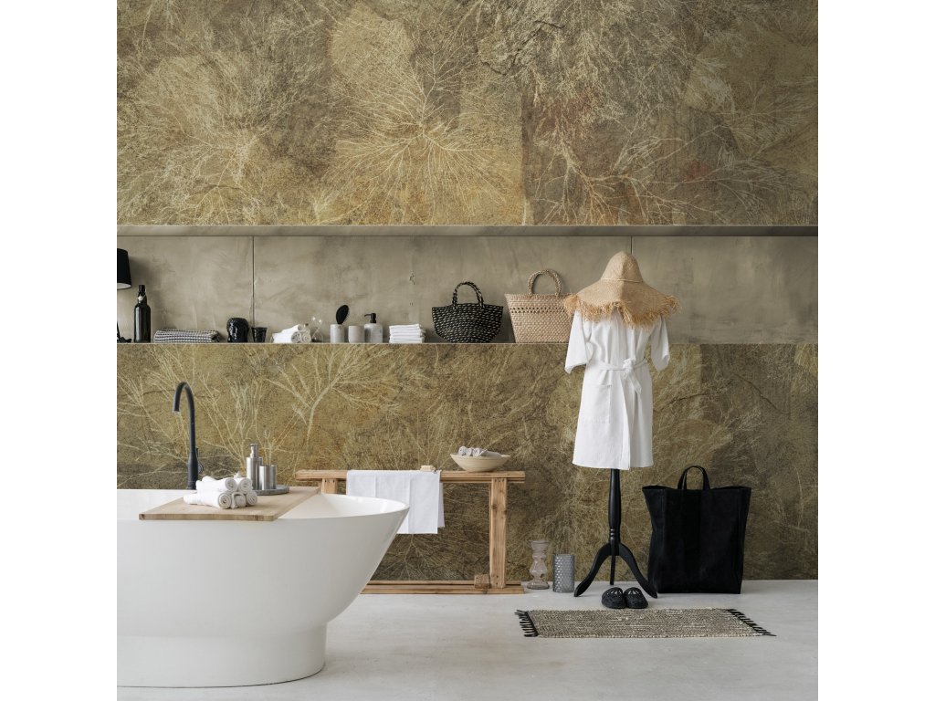 Tapety so zlatými, striebornými a medenými prvkami sú vytvorené vytlačením textúry príslušnou farbou do materiálu.