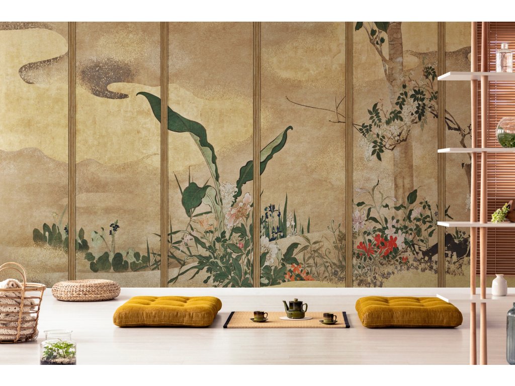 Tapety so zlatými, striebornými a medenými prvkami sú vytvorené vytlačením textúry príslušnou farbou do materiálu.