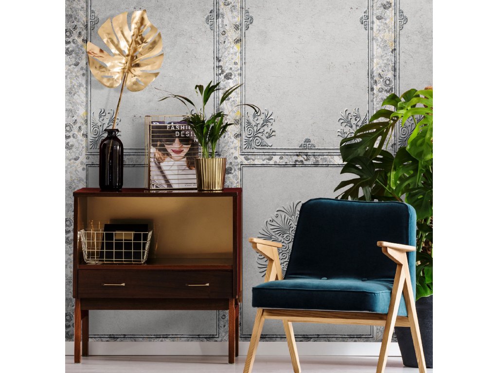 Tapety so zlatými, striebornými a medenými prvkami sú vytvorené vytlačením textúry príslušnou farbou do materiálu.