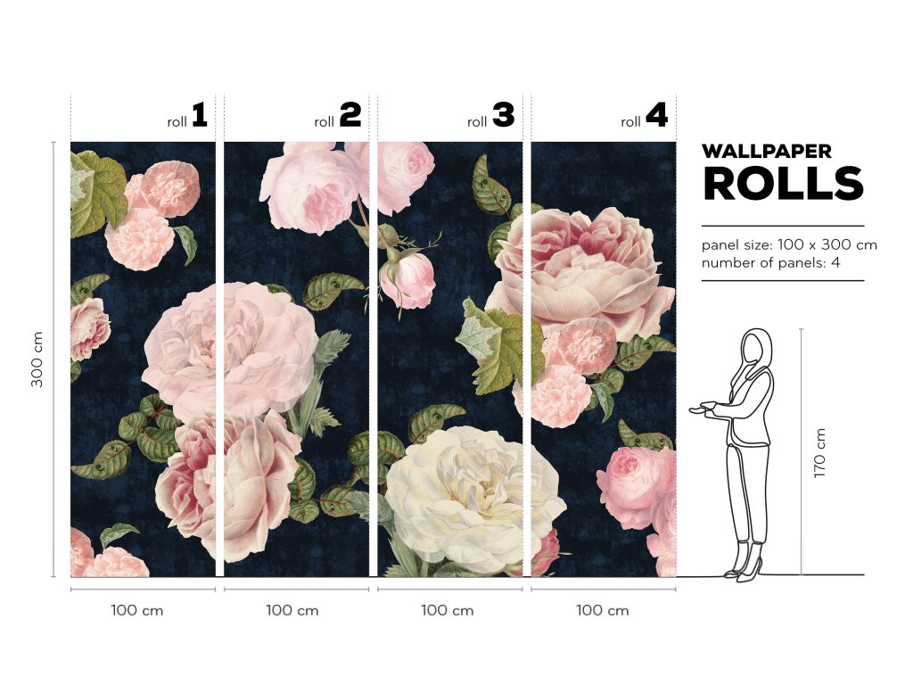 Tapeta Roses dark blue - na mieru