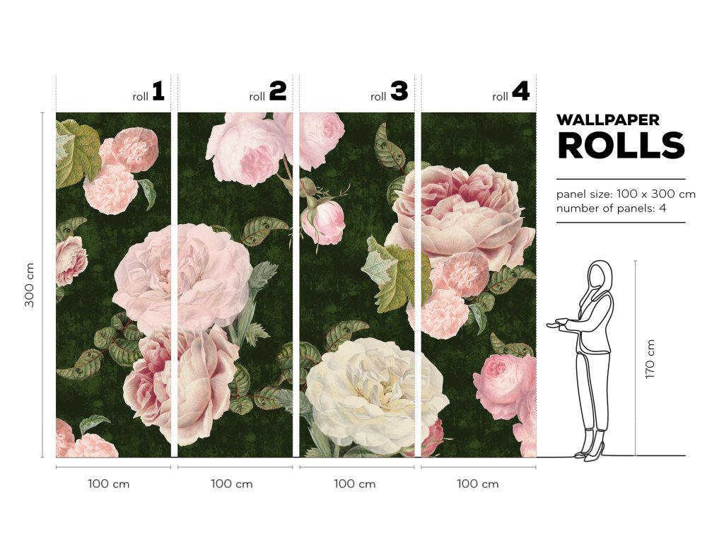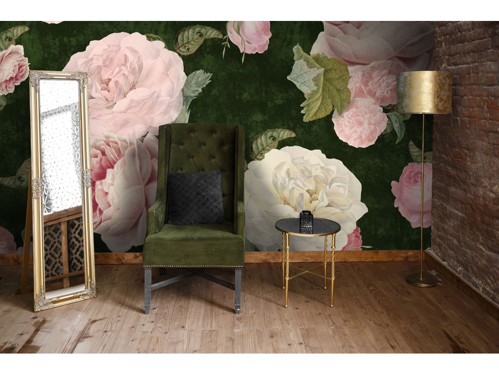 Tapeta Roses Dark Green - na mieru