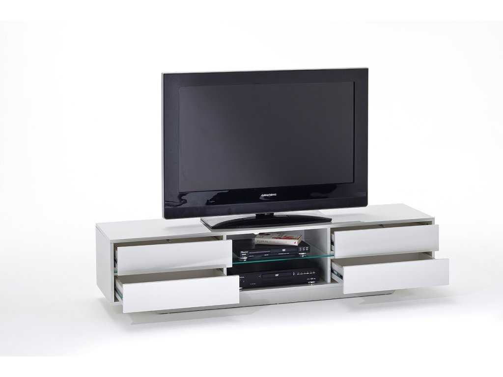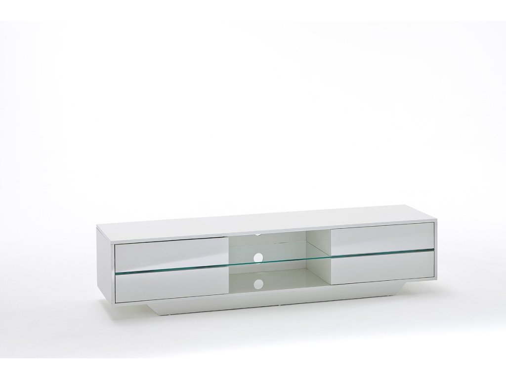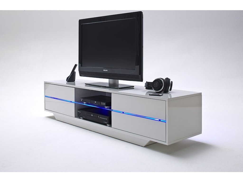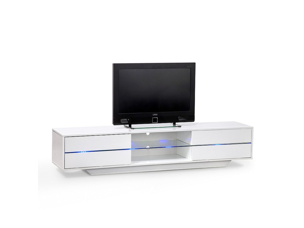 Vysokolesklý TV stolík so zásuvkami s dotykovým otváraním. Priestor medzi zásuvkami je vybavený LED podsvietením. Nosnosť stolíka je 40kg