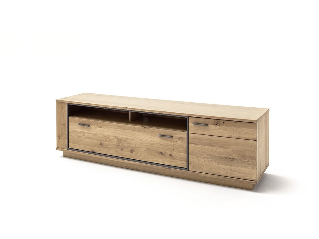 Dizajnový TV stolík z dubu bianco a kovovou antracitovou konštrukciou. Stolík taktiež ponúka zásuvku, skrinku a priestore pre setobox. V ponuke sa nachádzajú aj ďalšie kúsky z tejto kolekcie, stačí do vyhľadávania zadať "CAMPINAS" pre ich zobrazenie.