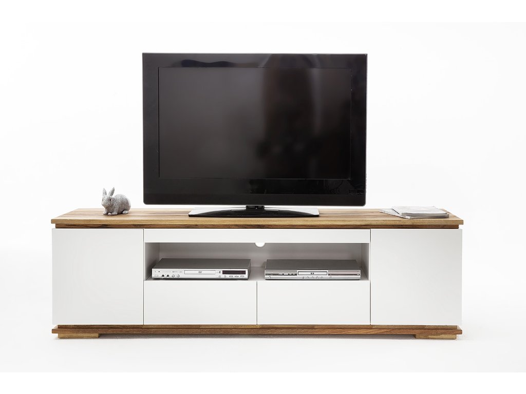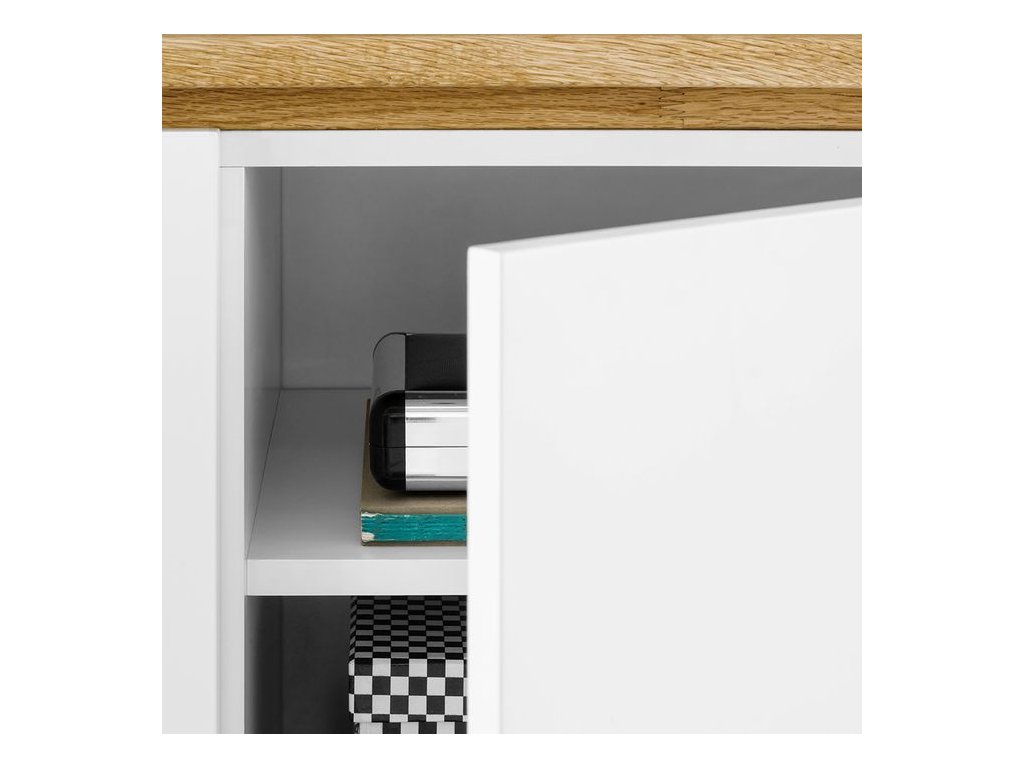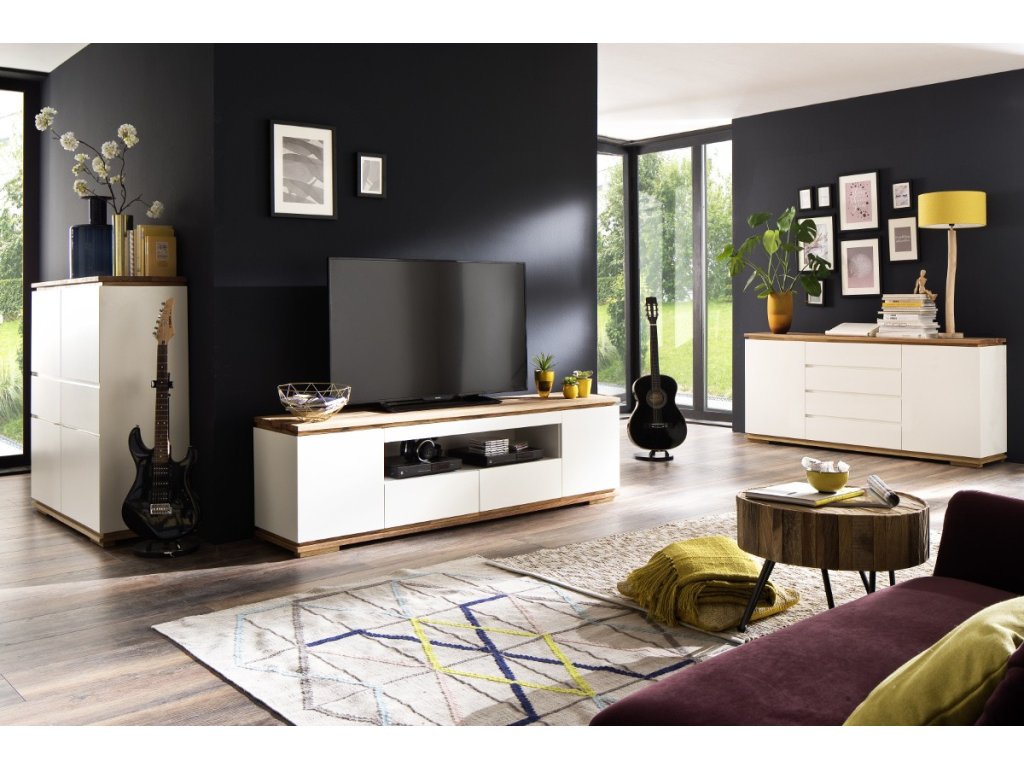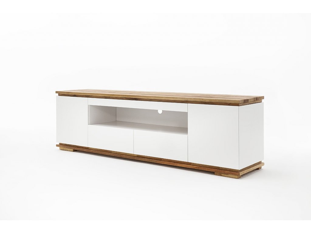 Elegantný TV stolík tvorí kombinácia dubového masívu a bielej/čiernej lakovanej vysokolesklej MDF. Stolík poskytuje bohatý úložný priestor v podobe 2 zásuviek, 2 dvierok a jedného otvoreného priestoru. Ultramoderný dizajn a funkčnosť v jednom. Otvorený výklenok má rozmer 33,5 x 17 cm. V ponuke sa nachádzajú aj ďalšie kúsky z tejto kolekcie, stačí do vyhľadávania zadať "CHIARO" pre ich zobrazenie.