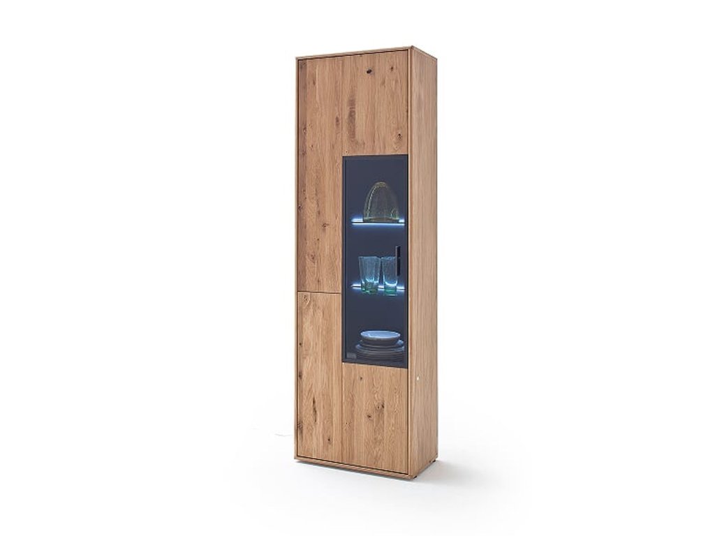 Dizajnová vitrína v prevedení dub Bianco v kombinácii s antracitovými prvkami a imitáciou dubového dekoru. Vitrína disponuje dvierkami za ktorými sa nachádzajú police s voliteľným LED osvetlením. V ponuke sa nachádzajú aj ďalšie kúsky z tejto kolekcie, stačí do vyhľadávania zadať "PORTLAND" pre ich zobrazenie.