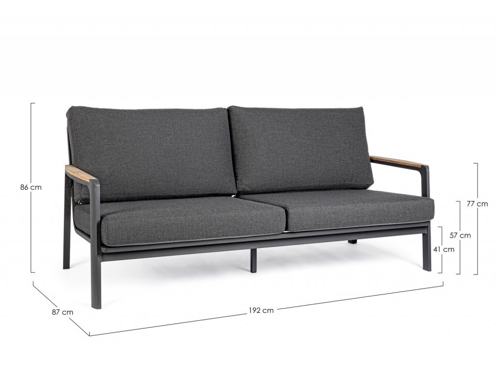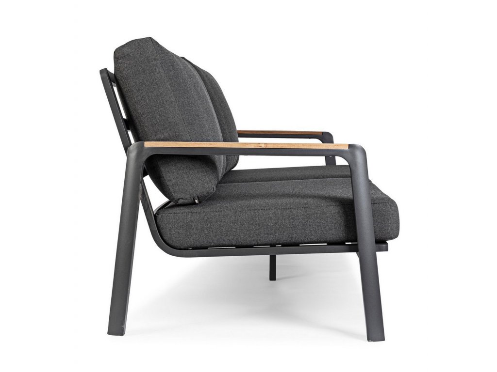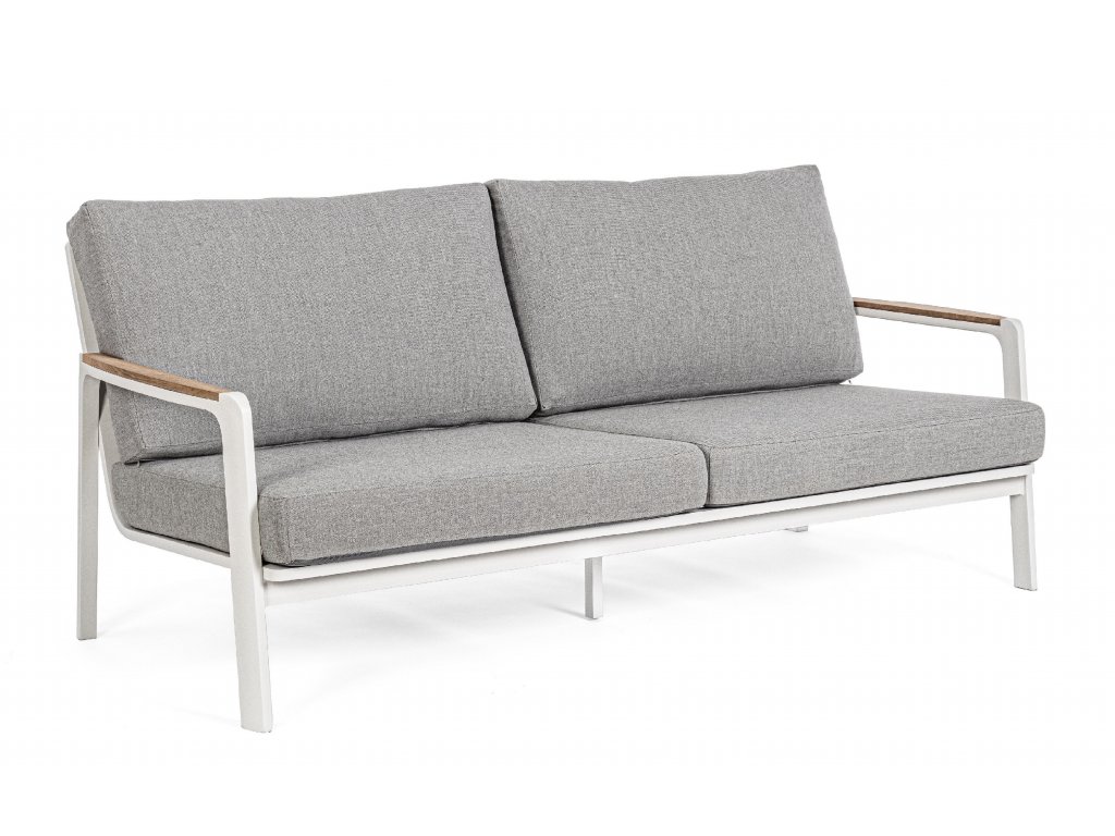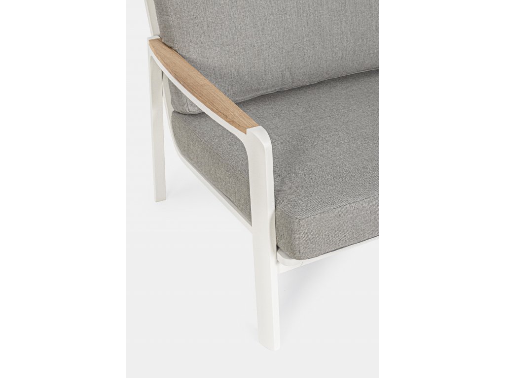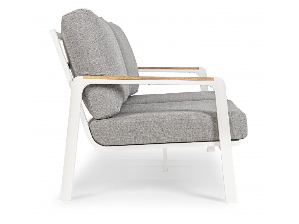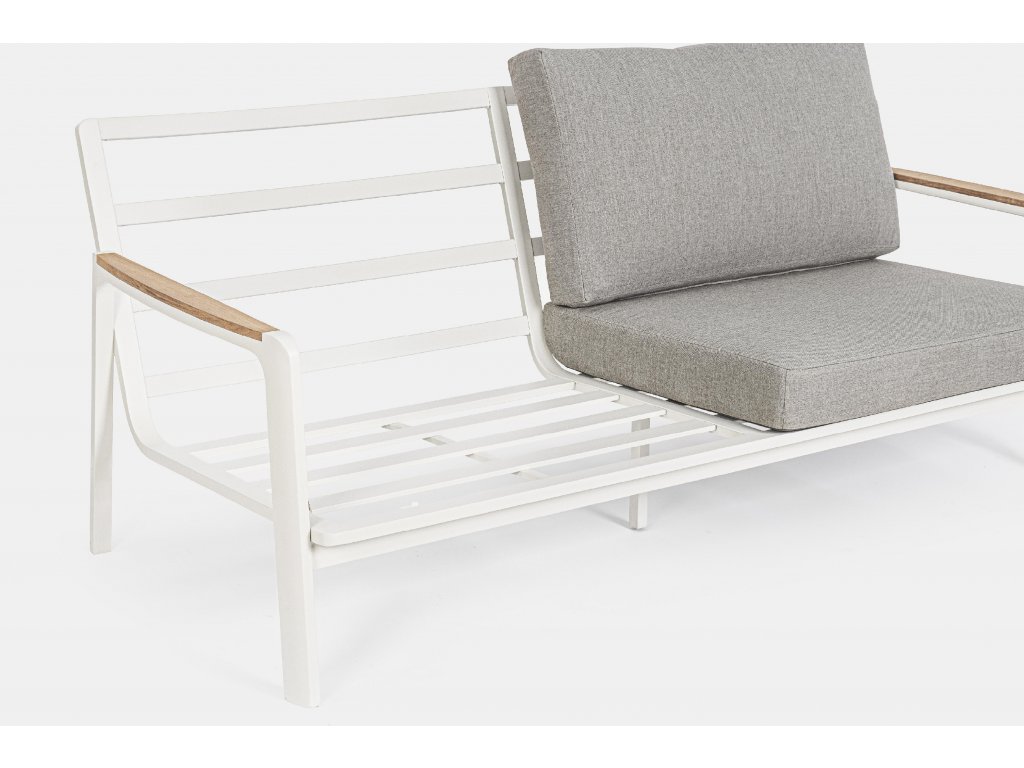 Dizajnová a pohodlná dvojmiestná pohovka z kolekcie záhradného nábytku JALISCO. Rám pohovky je vyrobený z hliníka s práškovým nástrekom dostupným vo farbách biela a antracit. Podrúčky z tikového prírodného dreva dopĺňajú dizajn pohovky. Vankúše a operadlo sú vyplnené rychloschnúcou penou s odnímateľným poťahom z akrylovej tkaniny. V prípade, že máte záujem o ďalšie produkty z tejto kolekcie stačí zadať do vyhľadávania "JALISCO".