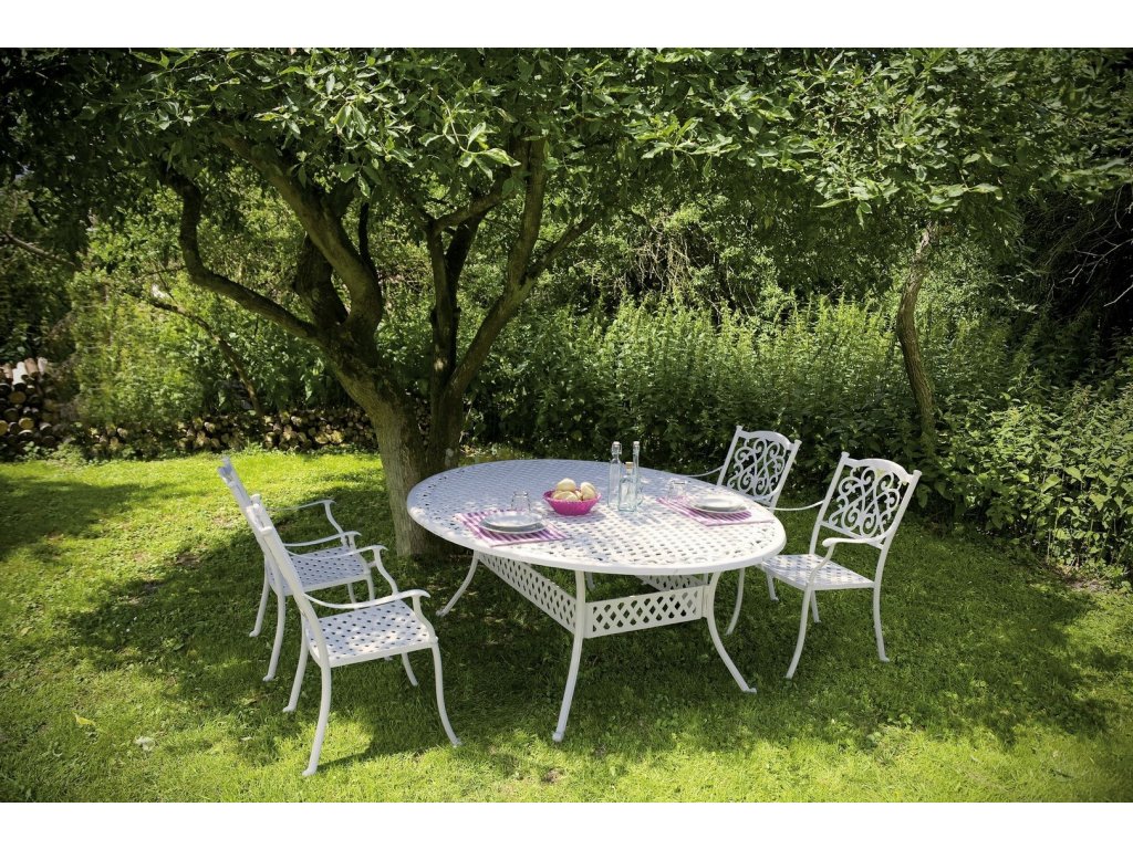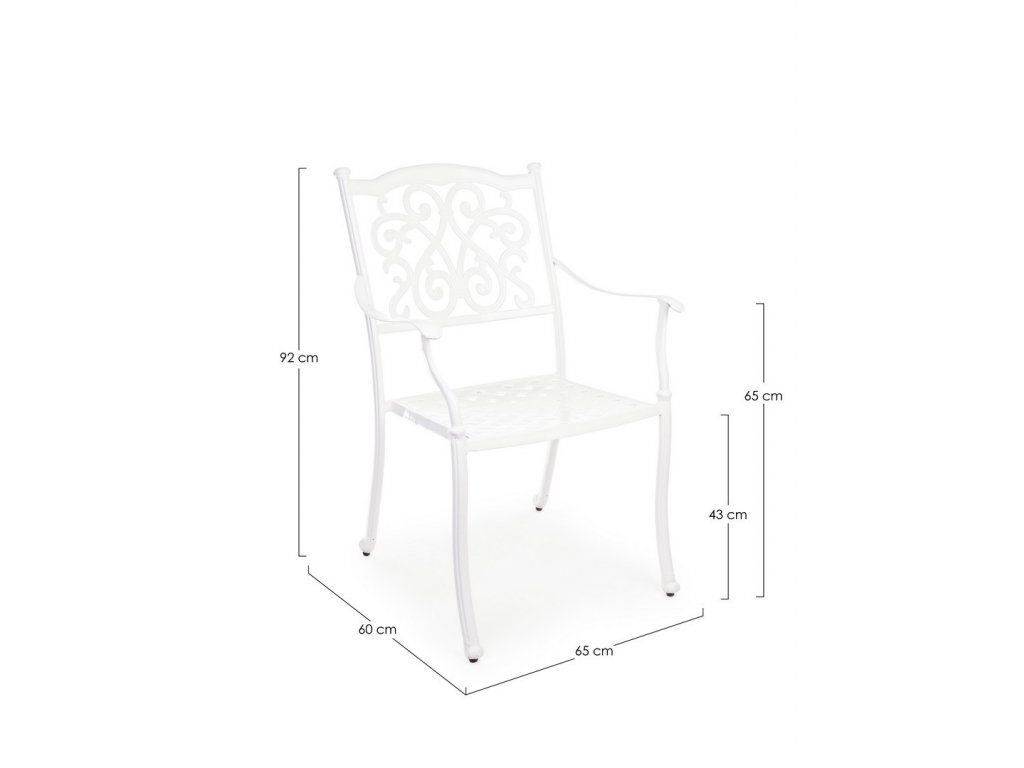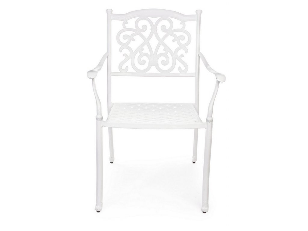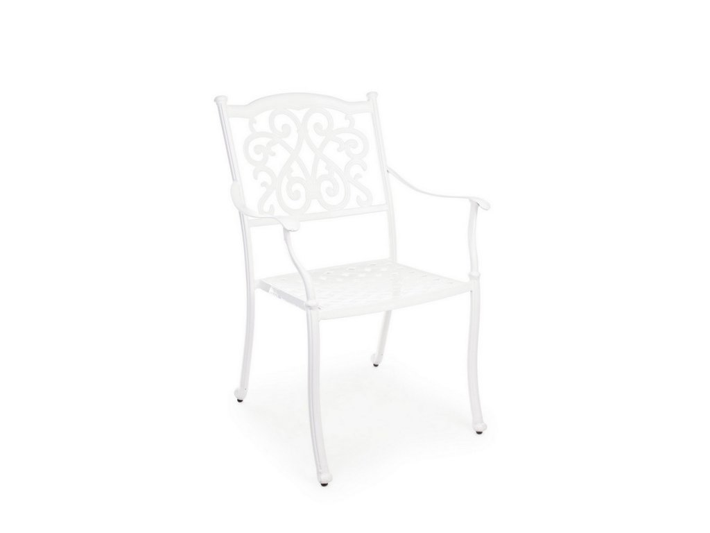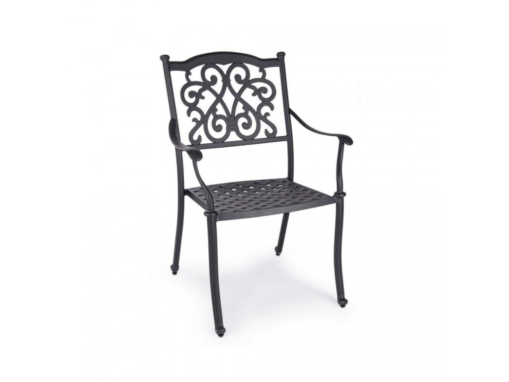 Záhradná stolička v starožitnom štýle z kolekcie vonkajšieho nábytku IVREA. Stolička je celá z hliníka odlievaná pod tlakom s práškovým nástrekom v antracitovej alebo bielej farbe. Stoličky sú stohovateľné čo uľahčuje ich uskladnenie. Pre vyhľadanie ďalších produktov z tejto kolekcie stačí zadať do vyhľadávania "IVREA".