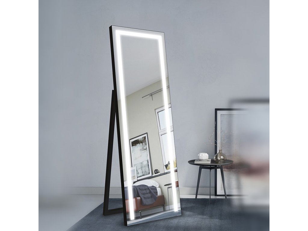 Stojace zrkadlo LED do spálne je možné umiestniť k toaletnému stolíku alebo do šatne. Moderný dizajn stojaceho zrkadla s LED diódami dokonale splynie so súčasnými aranžmánmi a vytvára zaujímavú kompozíciu, ktorá púta pozornosť.