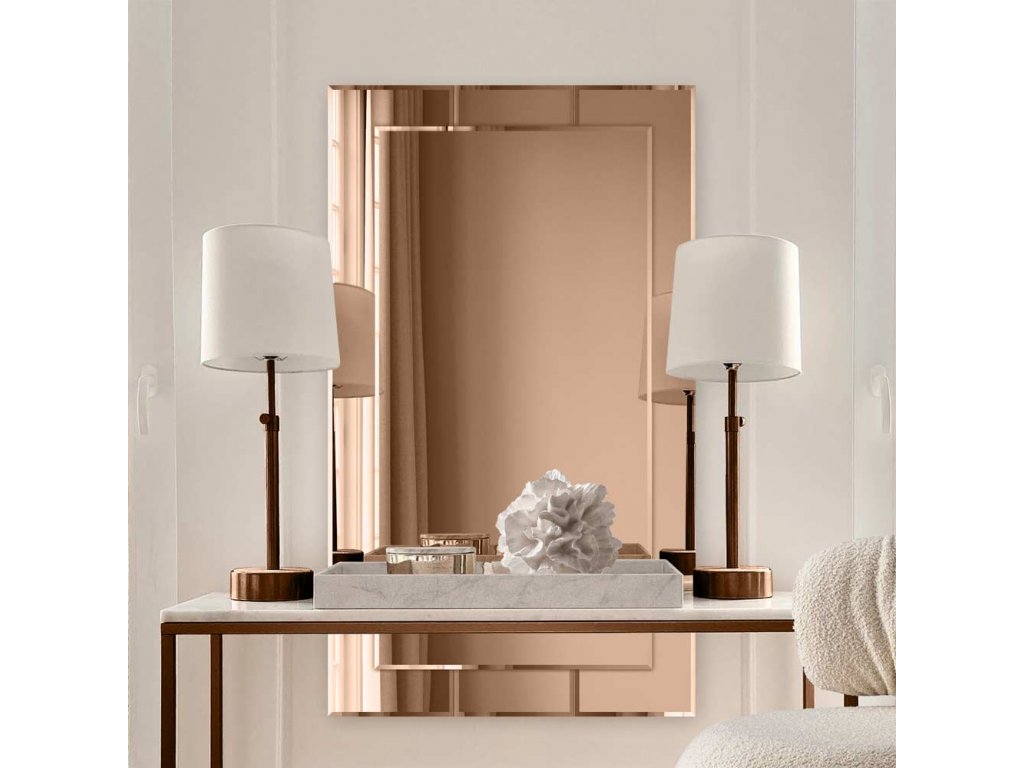 - Na výrobu tohto zrkadla používame najkvalitnejšie bronzové zrkadlo. Spodná strana zrkadla je chránená teflónom, ktorý ho chráni pred korozívnymi účinkami vlhkosti. Možno využiť ako kúpeľnové zrkadlo.