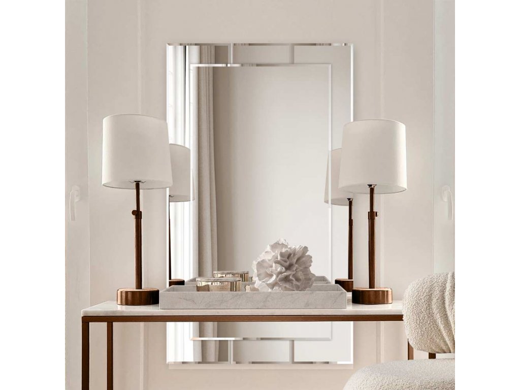 - Zrkadlo má na zadnej strane namontované závesy na vertikálnu aj horizontálnu montáž na stenu. Na požiadanie môže byť bez závesov (na prilepenie na stenu).