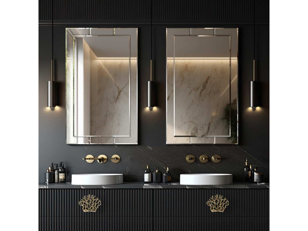 - Používame vysokokvalitné zrkadlo Opti White. Ide o mimoriadne čisté super biele zrkadlá s výrazne vyššou priehľadnosťou skla. Zrkadlá Opti White majú znížený obsah železa, čím sa do značnej miery odstránil typický zelenkavý odtieň skla. Zrkadlá Opti White sú takmer bezfarebné, majú oveľa vyššiu priepustnosť svetla a zaručujú vernejšiu reprodukciu farieb. Majú čistejší odraz a oveľa jasnejší okraj. Zrkadlo je vhodné do kúpeľne.