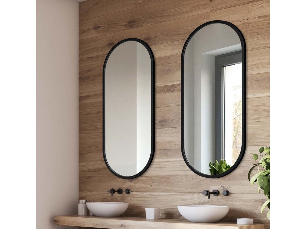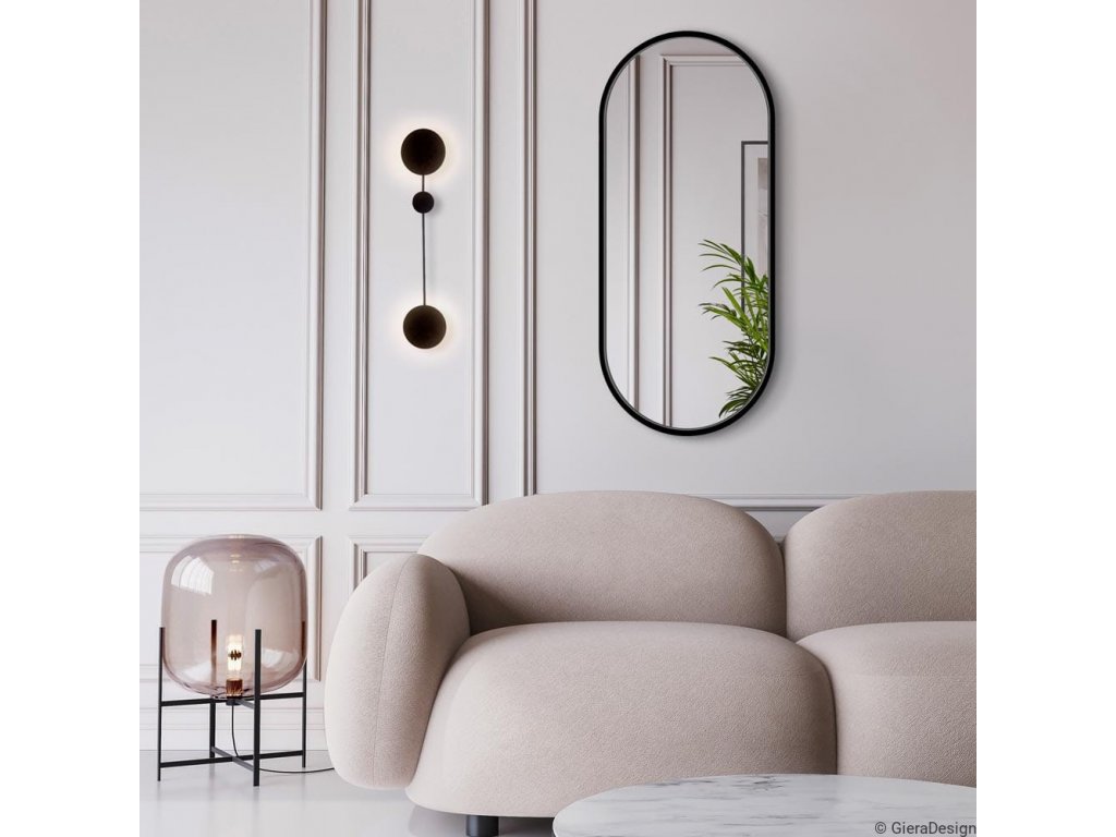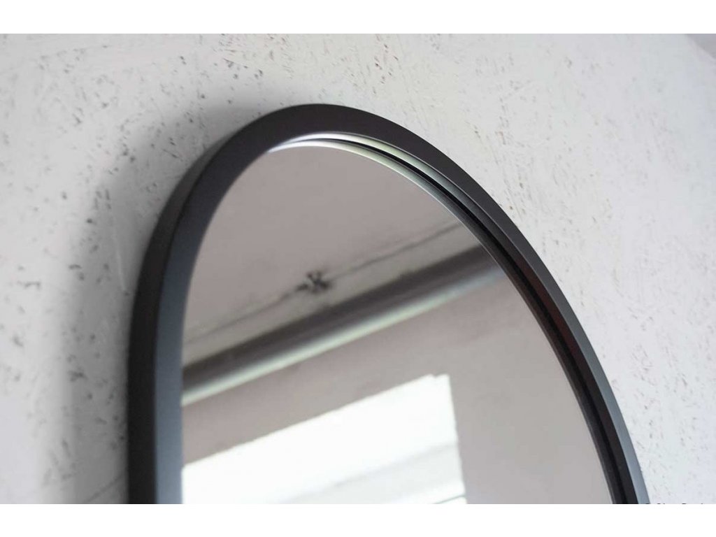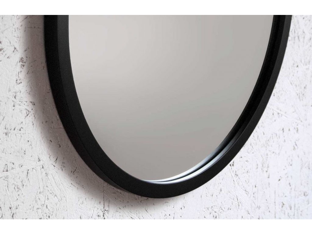 Oválne nástenné zrkadlo s rámom v elegantnej čiernej farbe. Perfektne sa hodí do interiérov v eklektickom, škandinávskom alebo modernom štýle. Rám zrkadla je vyrobený z vodeodolnej MDF lakovanej na čierno tvrdým dvojzložkovým polyuretánovým lakom. Vysoko lesklé zrkadlo s leštenými hranami je zabezpečené vrstvou teflónu, ktorá ho chráni pred korozívnymi účinkami vlhkosti - vhodné aj do kúpeľne.Zrkadlá sú vyrobené z tých najkvalitnejších belgických zrkadiel s vysokou priepustnosťou a leskom. Brúsenie a leštenie hrán je vykonávané na kvalitných talianskych strojoch pre spracovanie skla.
