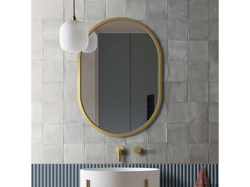 Nádherné nástenné zrkadlo v oválnom prevedení s rámom v zlatej farbe. Dokonale sa hodí do interiérov v eklektickom, škandinávskom alebo modernom štýle. Rám zrkadla je vyrobený z vodeodolnej MDF lakovanej tvrdým dvojzložkovým polyuretánovým lakom. Vysoko lesklé zrkadlo s leštenými hranami je zabezpečené vrstvou teflónu, ktorá ho chráni pred korozívnymi účinkami vlhkosti - vhodné aj do kúpeľne.Zrkadlá sú vyrobené z tých najkvalitnejších belgických zrkadiel s vysokou priepustnosťou a leskom. Brúsenie a leštenie hrán je vykonávané na kvalitných talianskych strojoch pre spracovanie skla.