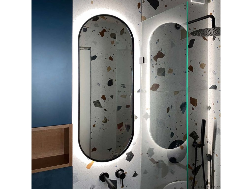 - Napájanie: IP68, 12V, integrované, skryté za zrkadlovou plochou Vzdialenosť od steny: 15-20 mm (v závislosti od modelu zrkadla) Pohodlné napájanie pomocou vodotesných konektorov - vývod kábla v strede zrkadla. Voliteľný spínač: bezkontaktný s regulátorom jasu. Senzor: zapne osvetlenie, keď je detekovaný plynulý pohyb v rámci detekčného poľa až do 7 cm od senzora. Vypne sa, keď senzor zaznamená ďalší pohyb. Senzor je umiestnený na pravej strane pri spodnom okraji zrkadla.