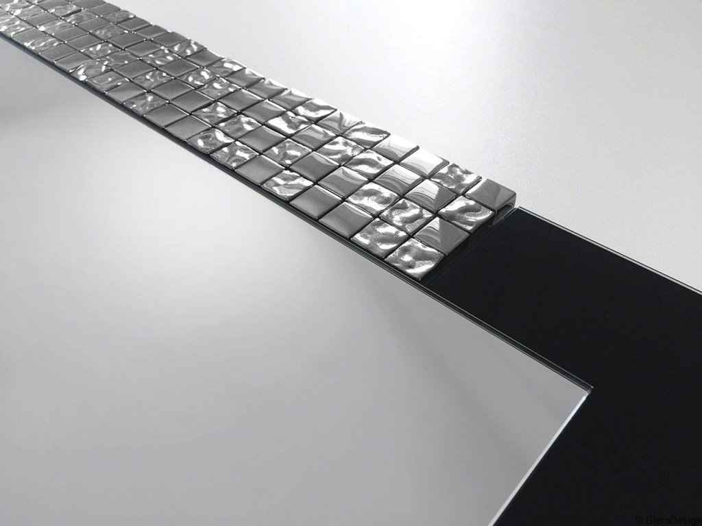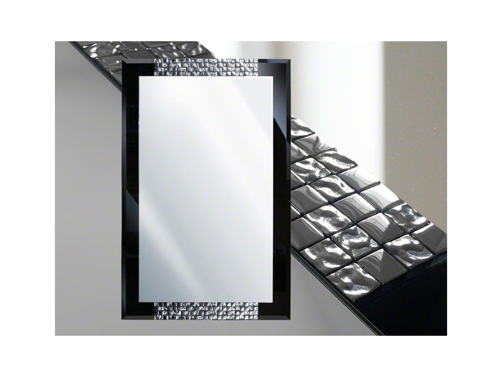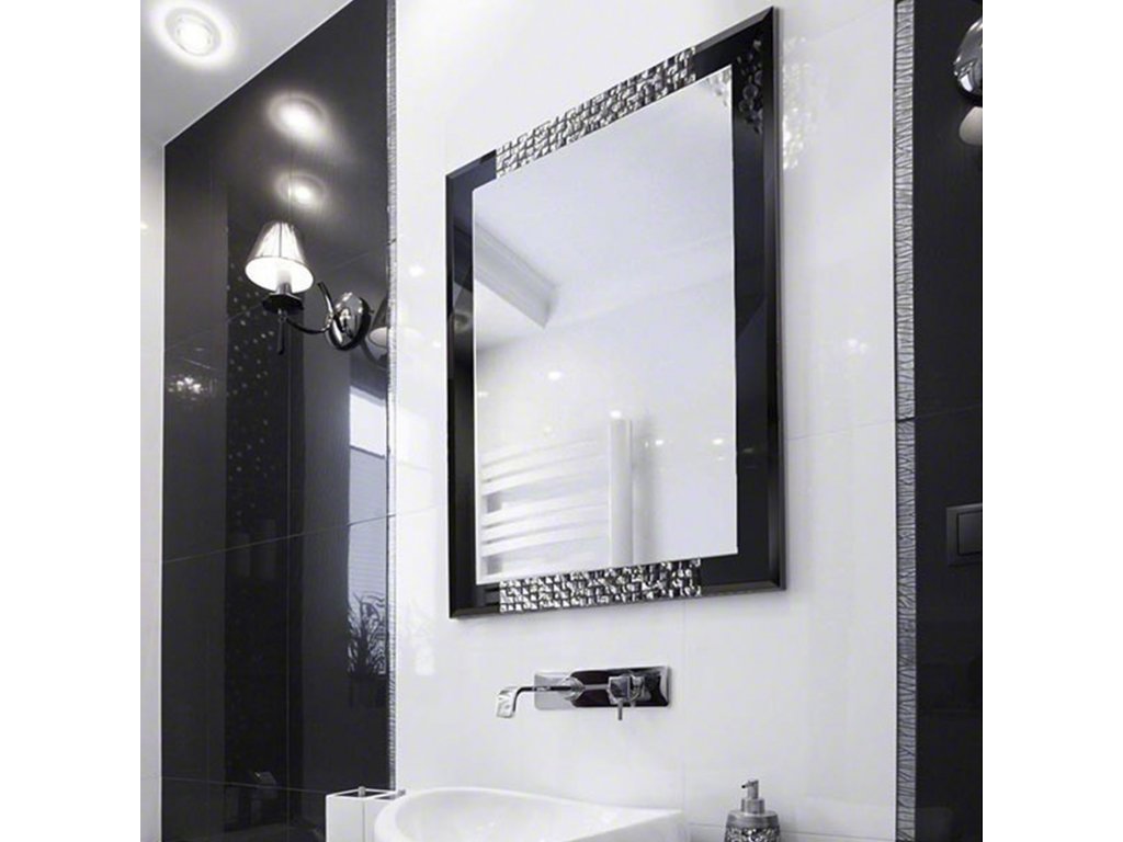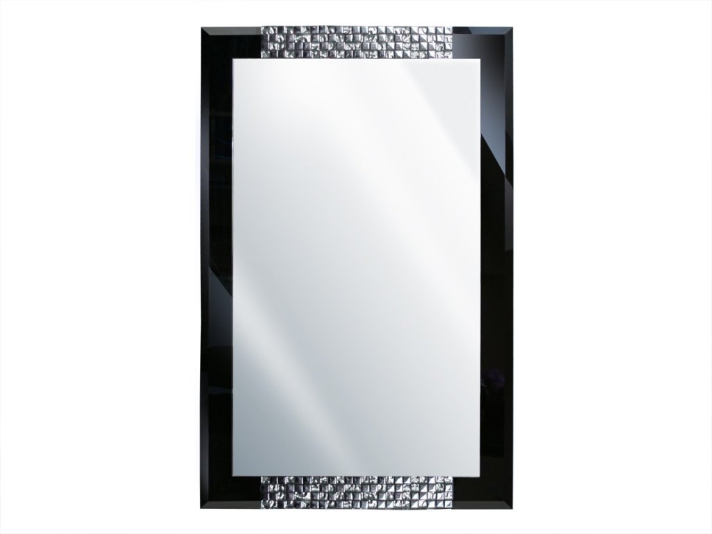 Elegantné nástenné zrkadlo Attika v čiernom ráme ozvláštni každý interiér. Dizajnový rám zrkadla je vyrobený z čierneho skla Lacobel zdobeného striebornými sklenenými kameňmi.