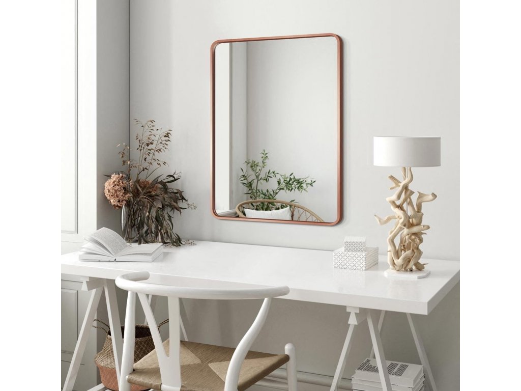 Elegantné nástenné zrkadlo obdĺžnikového tvaru v tenkom bielom ráme so zaoblenými rohmi sa hodí takmer kdekoľvek, ideálne do škandinávskeho interiéru, ale vynikne aj v iných interiéroch. Extrémne tenký rám je široký iba 10 mm. Zrkadlo je vhodné aj do kúpeľne, je totiž zabezpečené teflónom, ktorý ho chráni pred korozívnym účinkom vlhkosti.