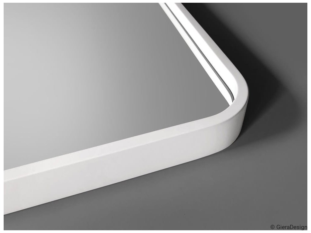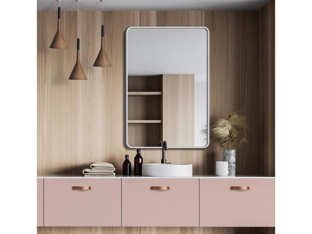 Toto nástenné zrkadlo je nádherné dielo obdĺžnikového tvaru v tenkom bielom ráme so zaoblenými rohmi. Extrémne tenký rám je široký iba 10 mm, jeho hĺbka je 38 mm. Toto zrkadlo sa hodí takmer kdekoľvek. Ideálne do škandinávskeho interiéru, ale vynikne aj v iných interiéroch. Je vhodné aj do kúpeľne, je totiž zabezpečené teflónom, ktorý ho chráni pred korozívnym účinkom vlhkosti.