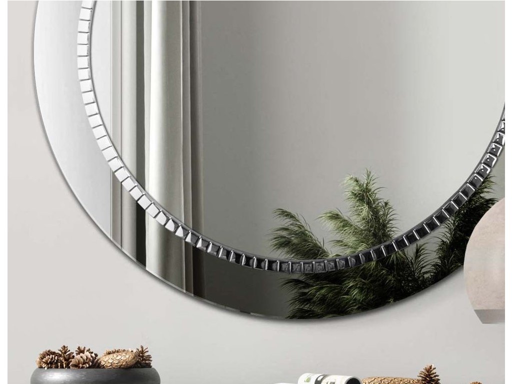 Pôsobivé dekoratívne zrkadlo v ráme zdobenom striebornou sklenenou mozaikou. Zrkadlový rám v odtieni grafit. Zrkadlo je vhodná nielen do kúpeľne, ale aj do obývacej izby, spálne alebo predsiene. Vynikne v klasických aj glamour interiéroch.