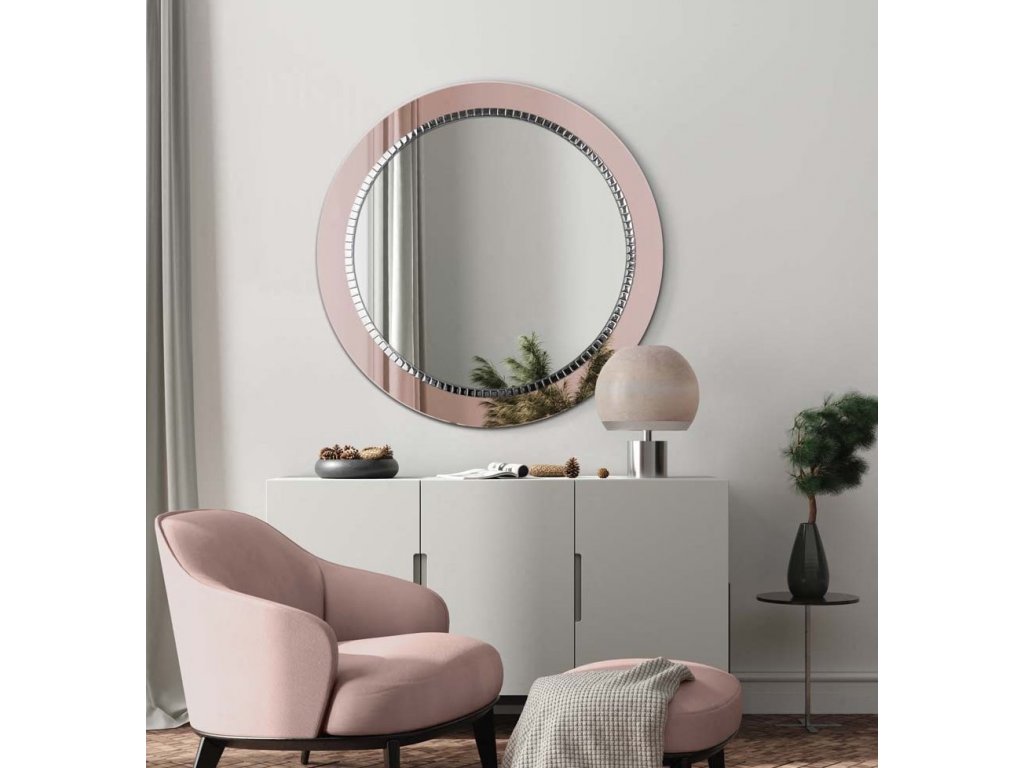 Pôsobivé dekoratívne zrkadlo v ráme zdobenom striebornou sklenenou mozaikou. Zrkadlový rám v odtieni ružové zlato - rose gold.