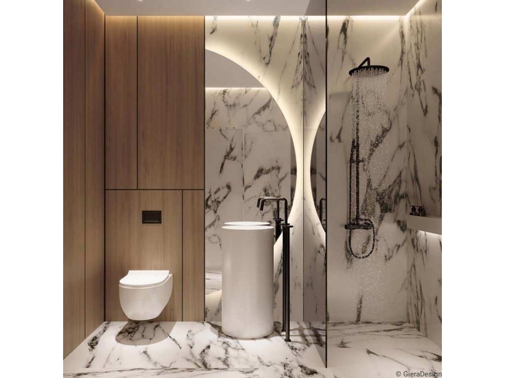 - Napájanie: IP68, 12V, integrované, skryté za panelom zrkadla