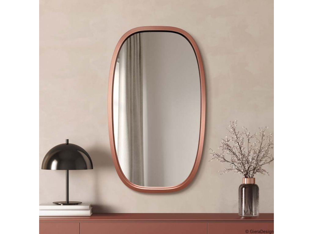 Dizajnové oválne zrkadlo v medenom ráme dokonale dopĺňa moderné interiéry, perfektne ladí s doplnkami ako sú kovania, lampy, vázy. Tento model bude vyzerať skvele ako v kúpeľni, tak v spálni, šatníku alebo obývacej izbe.