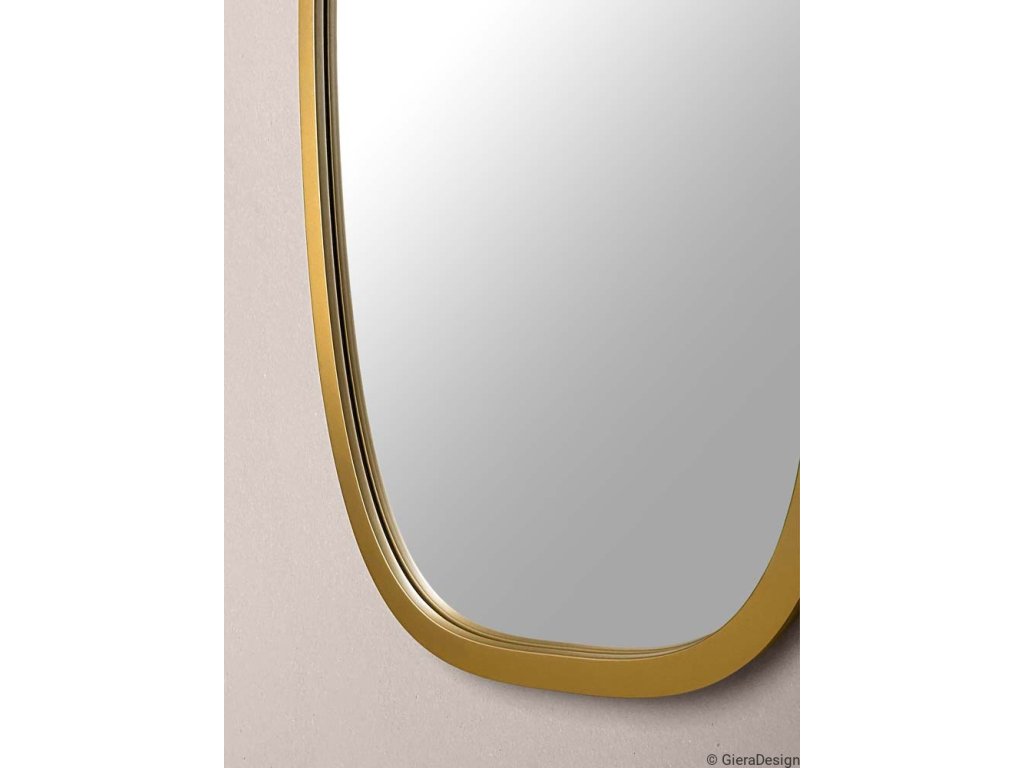 Dizajnové oválne zrkadlo v zlatom ráme dokonale dopĺňa moderné interiéry, perfektne ladí s doplnkami ako sú kovania, lampy, vázy. Tento model bude vyzerať skvele ako v kúpeľni, tak v spálni, šatníku alebo obývacej izbe.