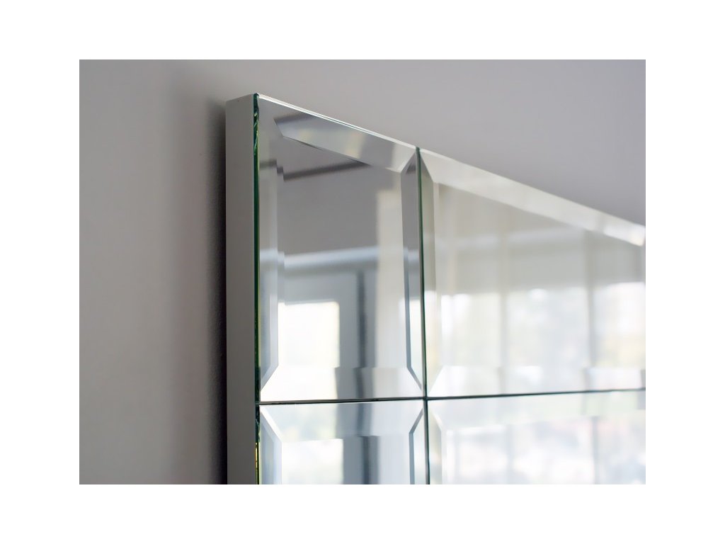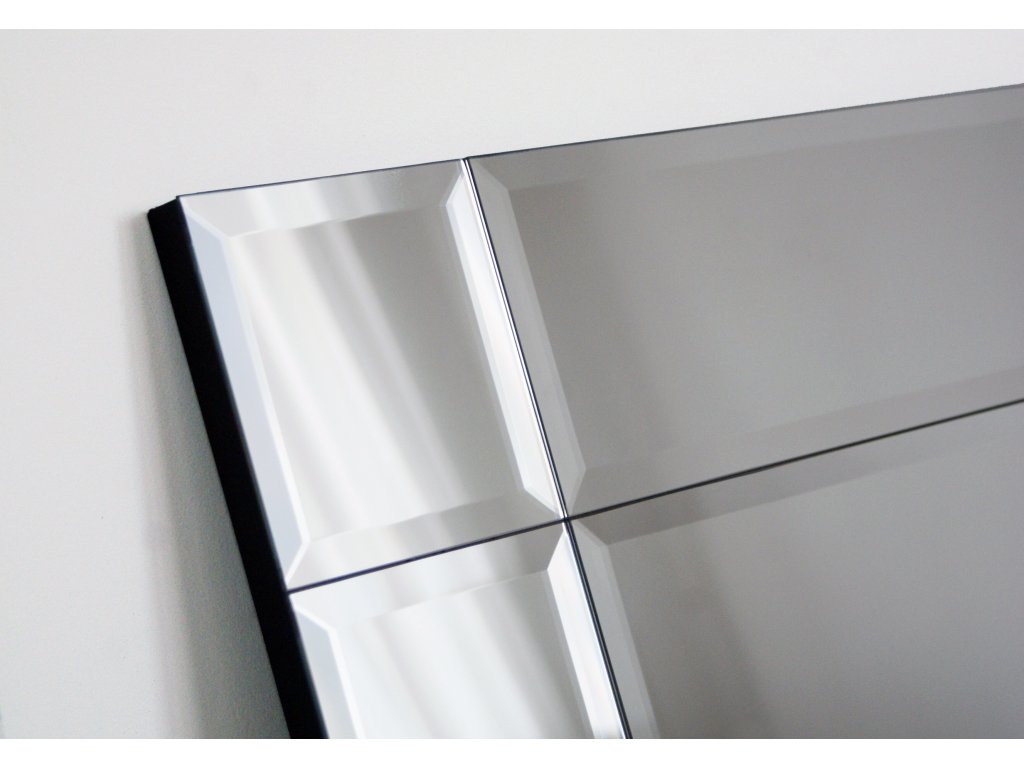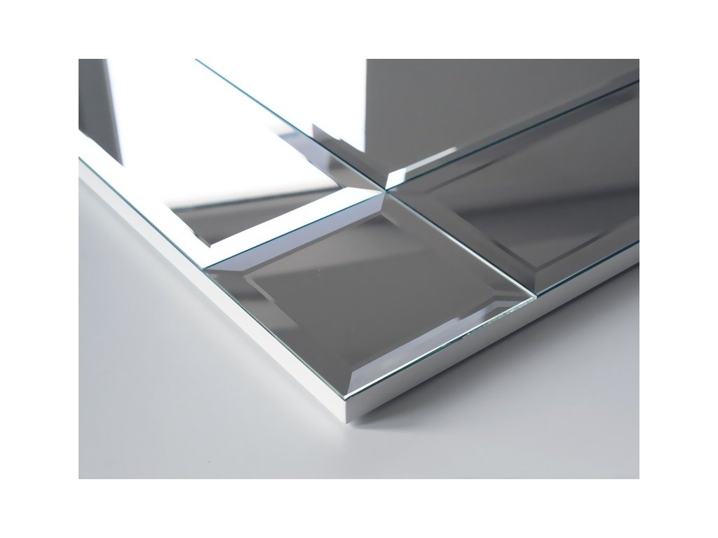 Elegantné krištáľové dekoratívne zrkadlo s nadčasovým dizajnom odkazuje na štýl Art Deco. Všetky časti zrkadla majú fazetu širokú 1,5 cm. Máte možnosť si vybrať medzi bielou alebo čiernou MDF. Zrkadlo je zabezpečené teflónom, ktorý ho chráni pred korozívnym účinkom vlhkosti - vhodné i do kúpeľne. Je možné ho zavesiť vertikálne i horizontálne.