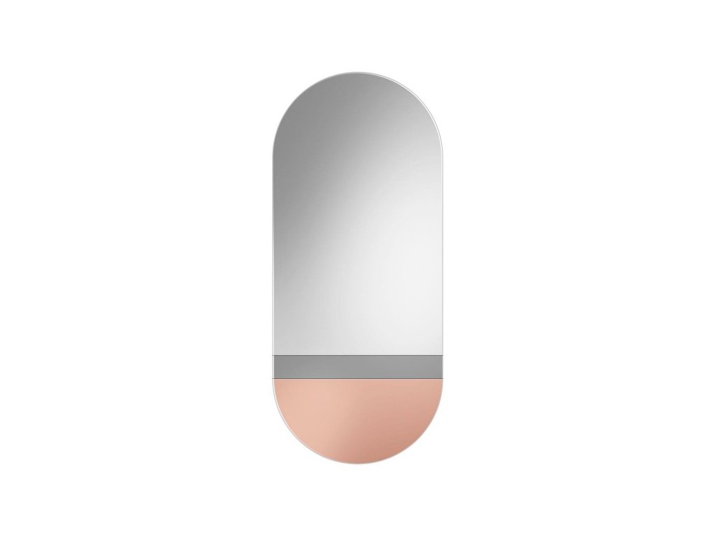 Originálne zrkadlo v modernom štýle, inšpirované grafikou 60. rokov, ozdobí modernú obývaciu izbu, spálňu alebo predsieň ako umelecké dielo. Toto oválne zrkadlo je krásnou ozdobou moderného interiéru, je vynikajúce aj pre moderné eklektické interiéry. Zrkadlo je kombináciou troch rôznych prvkov. Najväčšiu časť tvorí zrkadlová plocha najvyššej akosti. Nasleduje prúžok v grafitovej farbe. Poslednú časť zrkadla spestruje plocha v medenej farbe.