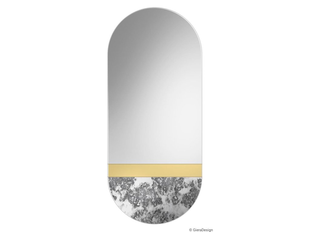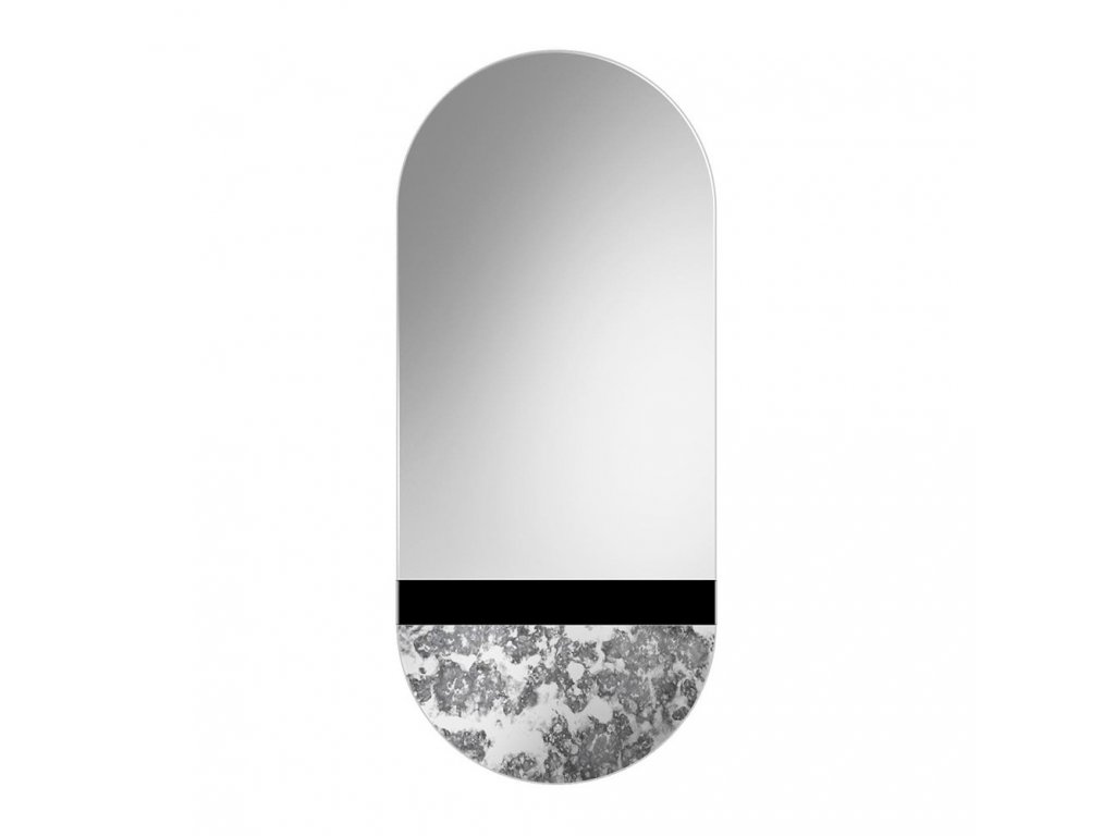 Originálne zrkadlo v modernom štýle, inšpirované grafikou 60. rokov, ozdobí modernú obývaciu izbu, spálňu alebo predsieň ako umelecké dielo. Toto oválne zrkadlo je krásnou ozdobou moderného interiéru, je vynikajúce aj pre moderné eklektické interiéry. Zrkadlo je kombináciou troch rôznych prvkov. Najväčšiu časť tvorí zrkadlová plocha najvyššej akosti. Nasleduje prúžok v rôznom prevedení. Poslednú časť zrkadla spestruje plocha v starožitnom autentickom prevedení.