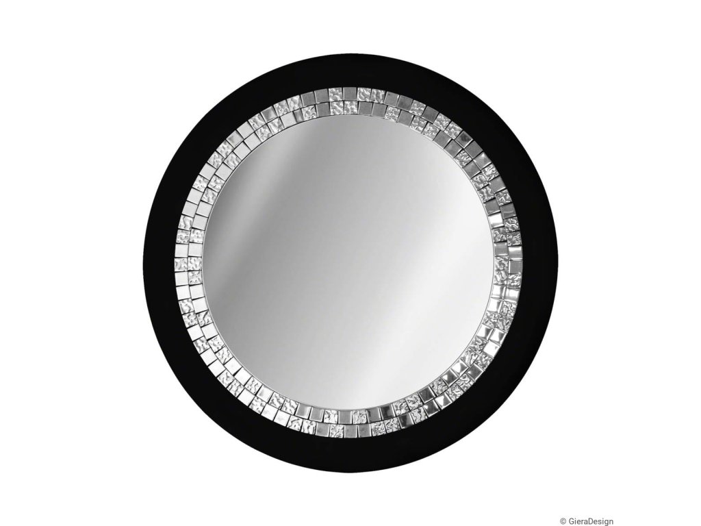- Rám je vyrobený z čierneho skla Lacobel a kvalitnej sklenenej striebornej mozaiky. Je do nej vlepené strieborné zrkadlo vo vysokom lesku.