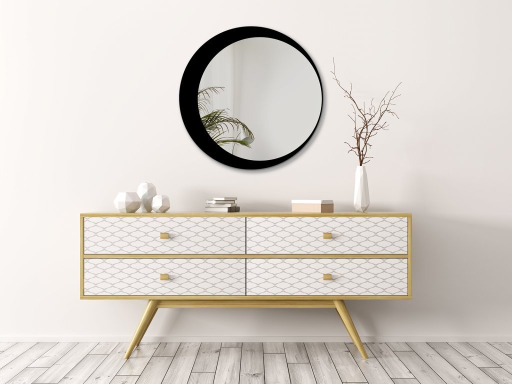 Rozdiel medzi čiernym rámom a zrkadlom je 10 cm v najširšej časti.