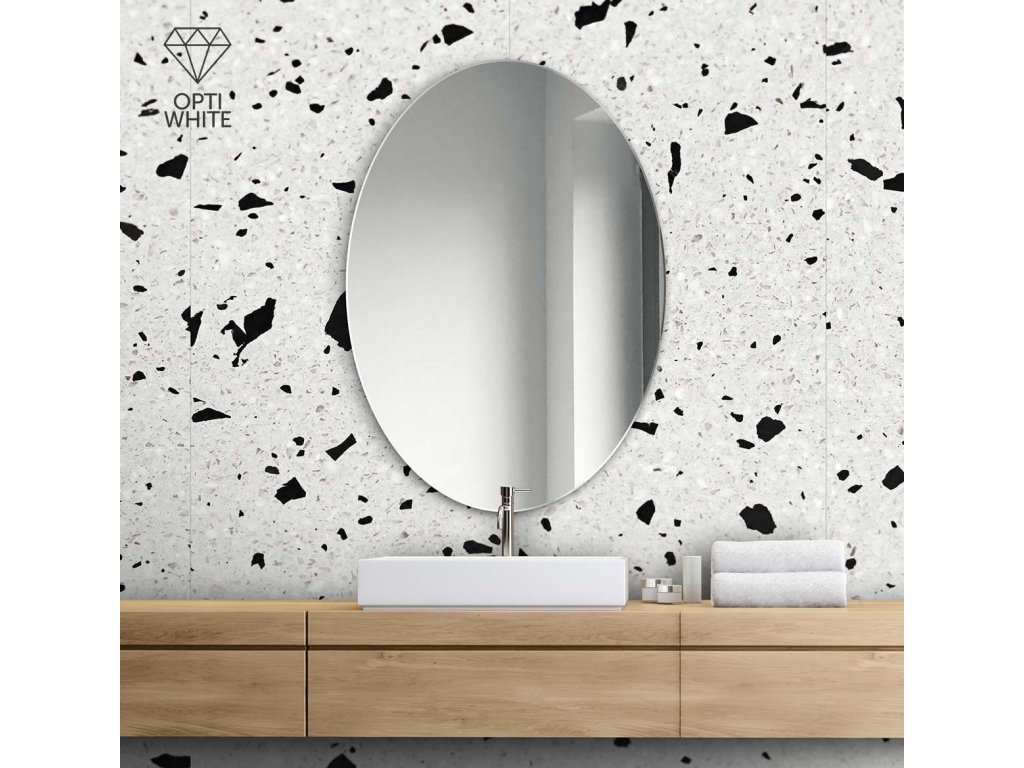 Elegantné oválne nástenné zrkadlo, ktoré sa vyznačuje super bielym prevedením skla. Ideálne sa hodí do kúpeľne, je možné ho zavesiť alebo prilepiť. Štandardne sa na zadnej strane nachádzajú úchyty, na požiadanie môže byť zrkadlo bez úchytov, na lepenie. Zabezpečené je vrstvou teflónu, ktorá ho chráni pred korozívnymi účinkami vlhkosti - vhodné do kúpeľne.Zrkadlo je vyrobené z najkvalitnejších zrkadiel Opti white. Ide o mimoriadne čisté, super biele zrkadlo s oveľa vyššou transparentnosťou skla. Zrkadlá Opti white majú nižší obsah železa, čo umožňuje odstrániť typické zelenkavé zafarbenie skla. Zrkadlá sú takmer bezfarebné, majú oveľa vyššiu priepustnosť svetla, zaisťujú vernosť farieb. Majú jasnejší odraz a určite svetlejšie okraje.