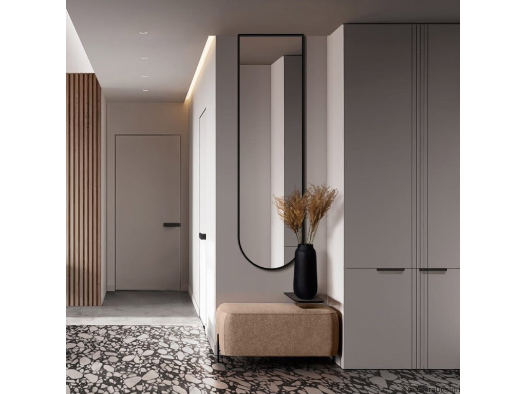 Nadčasový, zaoblený tvar a charakter dokonale ladí s takmer akýmkoľvek interiérom v škandinávskom, eklektickom alebo modernom štýle. V pozdĺžnej verzii je zrkadlo ideálne pre halu, rozmery umožňujú pohodlné prezeranie, pri pohľade na celú postavu. Široká verzia tohto zrkadla je výbornou voľbou do kúpeľne alebo nad komodu. Je vyrobené z vysoko kvalitných nepremokavých materiálov a je vhodný aj do kúpeľne.