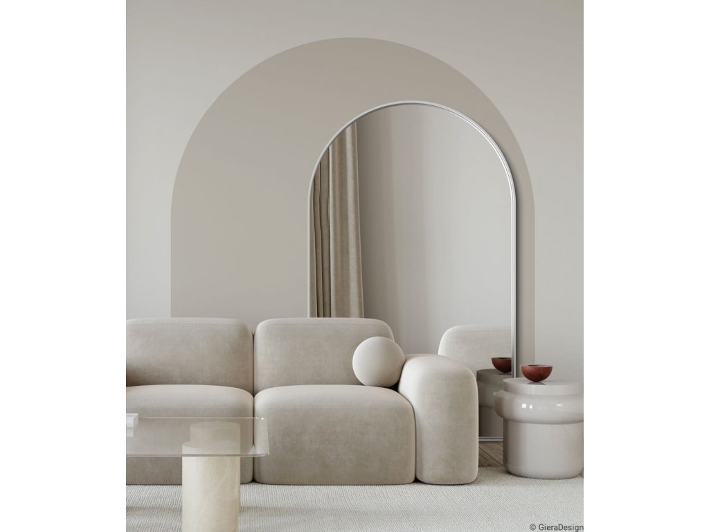 Veľké stojace zrkadlo s pôsobivým sýto bielym rámom. Zrkadlo sa skvele hodí do eklektických interiérov v retro štýle, ale dá sa efektívne umiestniť aj do moderného alebo podkrovného priestoru. Zrkadlo bude ako stvorené do predsiene, spálne i obývacej izby, bude nielen krásnou dekoráciou, ale aj opticky zväčší priestor.