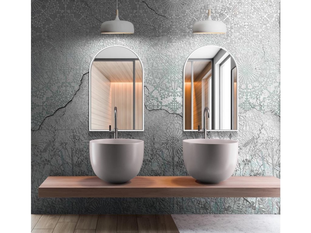Nadčasový, zaoblený tvar a charakter dokonale ladí s takmer akýmkoľvek interiérom v škandinávskom, eklektickom alebo modernom štýle. V pozdĺžnej verzii je zrkadlo ideálne pre halu, rozmery umožňujú pohodlné prezeranie, pri pohľade na celú postavu. Široká verzia tohto zrkadla je výbornou voľbou do kúpeľne alebo nad komodu. Je vyrobené z vysoko kvalitných nepremokavých materiálov a je vhodný aj do kúpeľne.