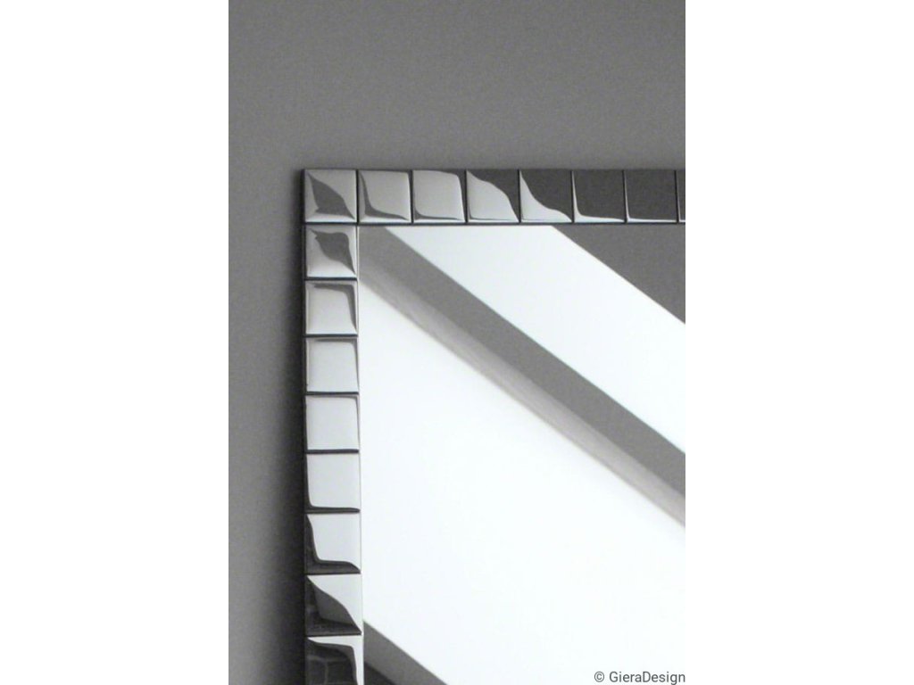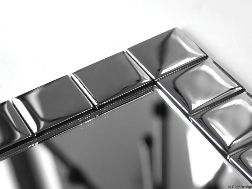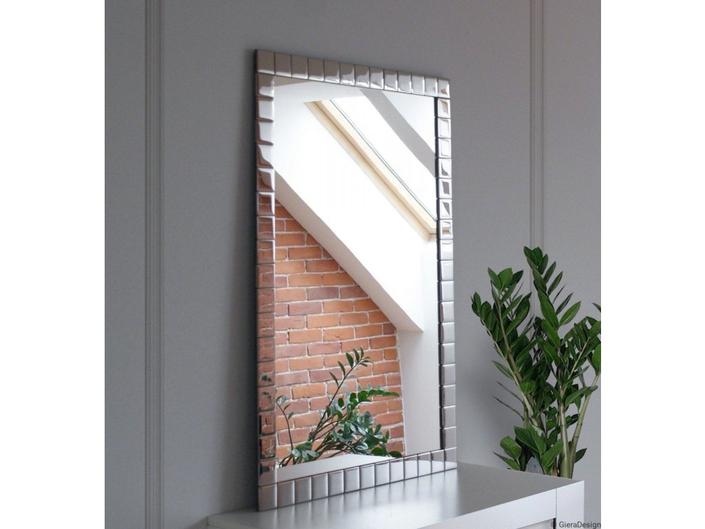 Moderné nástenné zrkadlo sa vynikajúco hodí do kúpeľne. Rám je vyrobený zo sklenených zrkadlových kameňov v originálnom tvare (48 x 48 mm). Zrkadlo je zabezpečené teflónom, ktorý ho chráni pred korozívnym účinkom vlhkosti - vhodné do kúpeľne. Zrkadlo je možné zavesiť horizontálne i vertikálne.Zrkadlo sa zhotovuje na zákazku, je možné vyrobiť aj iný rozmer. Zrkadlá sú vyrobené z tých najkvalitnejších belgických zrkadiel s vysokou priepustnosťou a leskom. Brúsenie a leštenie hrán je vykonávané na kvalitných talianskych strojoch pre spracovanie skla.