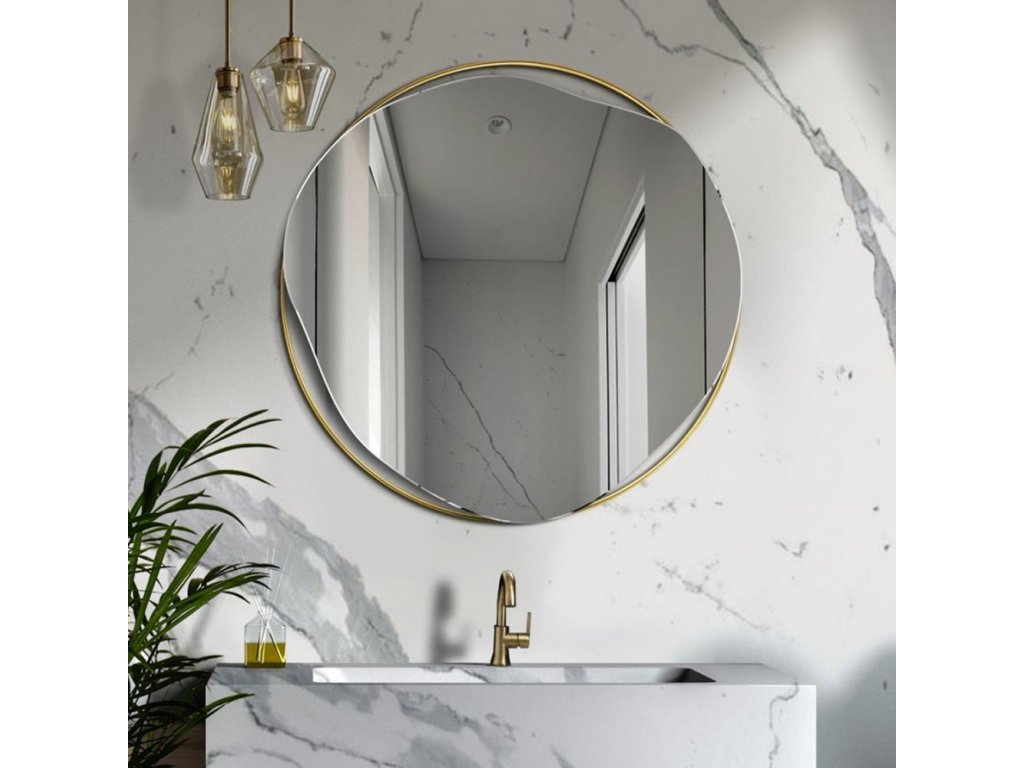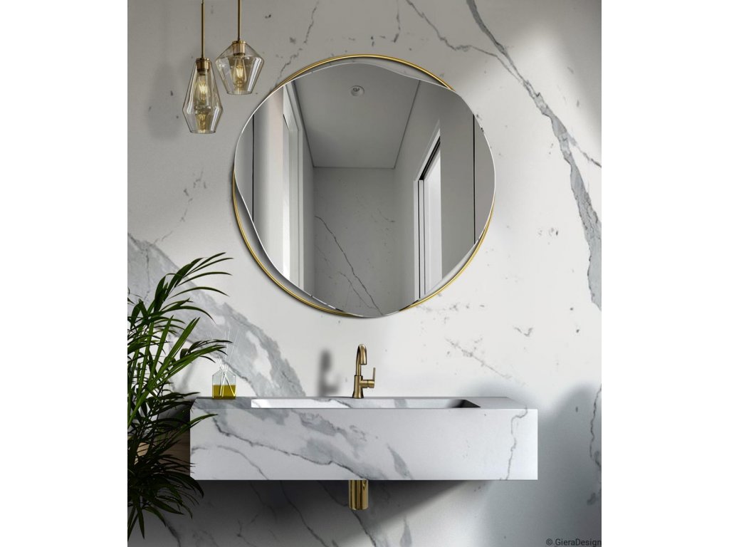 Zrkadlo vás zaručene upúta na prvý pohľad. Hlavným dôvodom je kombinácia dvoch materiálov - kovu a skla. Spolu vytvárajú veľmi elegantný celok. Hlavnou časťou je špičkové biele zrkadlo Opti White nepravidelného tvaru, ktoré je vsadené do vonkajšieho kruhového lemu z kvalitnej mosadze. Zrkadlo odporúčame hlavne do reprezentatívnych miestností, avšak nestratí sa ani v iných priestoroch interiéru.