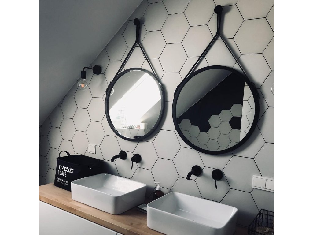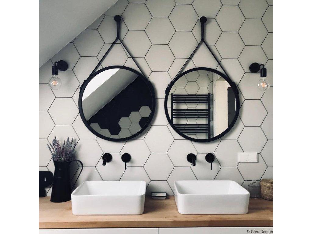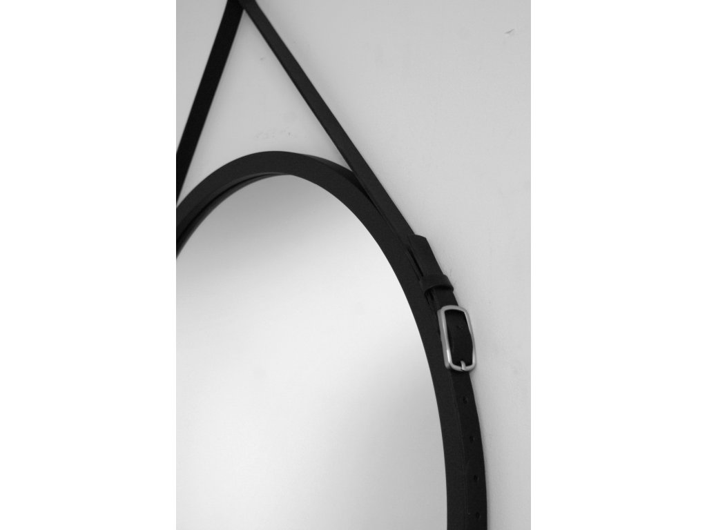Jedinečné okrúhle zrkadlo v škandinávskom štýle bude určite originálnym doplnkom Vašej domácnosti. Rám zrkadla je vyrobený z lakovanej MDF. Jednoduché, ale veľmi elegantné zrkadlo má to, čo púta pozornosť - precízne spracovanie, matný povrch a remienok z pravej kože - jedným slovom - kvalita. Celé je zavesené na koženom remeni /prírodná koža/.