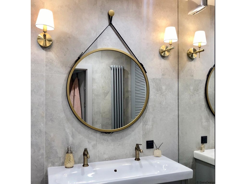 Luxusné zrkadlo bude ozdobou každej miestnosti. Rám zlatej farby, kvalitná zrkadlová plocha, v ktorej uvidíte aj tie najmenšie detaily a kožený remeň, na ktorý sa dá zrkadlo jednoducho zavesiť sú neodolateľnou kombináciou. Jedná sa o dekoratívne zrkadlo. Odporúčame ho zavesiť na také miesto, kde bude na očiach. Zrkadlo týchto kvalít totiž nepatrí do kúta.