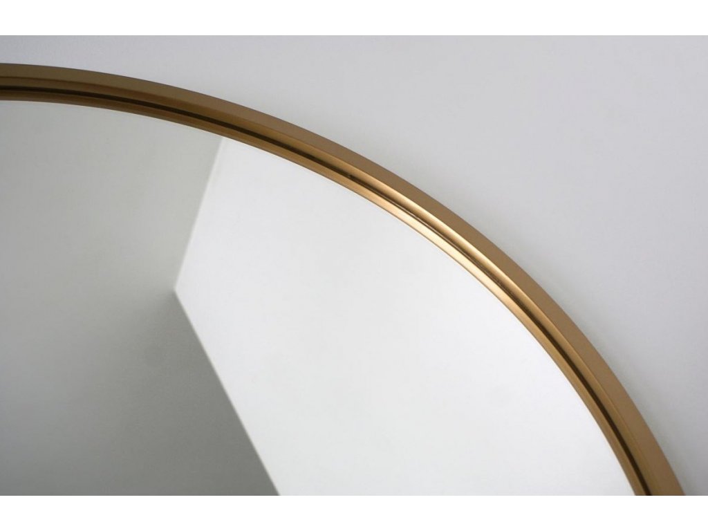 Elegantné okrúhle nástenné zrkadlo s nadčasvým dizajnom ladne ozdobí každý interiér. Rám zrkadla je vyrobený z vodeodolnej lakovanej MDF v zlatej farbe. Nástenné zrkadlo sa skvelo hodí do modernej jedálne, obývacej izby či spálne. Je chránené pred korozívnym účinkom vlhkosti - vhodné i do kúpeľne.Zrkadlá sú vyrobené z tých najkvalitnejších belgických zrkadiel s vysokou priepustnosťou a leskom. Brúsenie a leštenie hrán je vykonávané na kvalitných talianskych strojoch pre spracovanie skla.