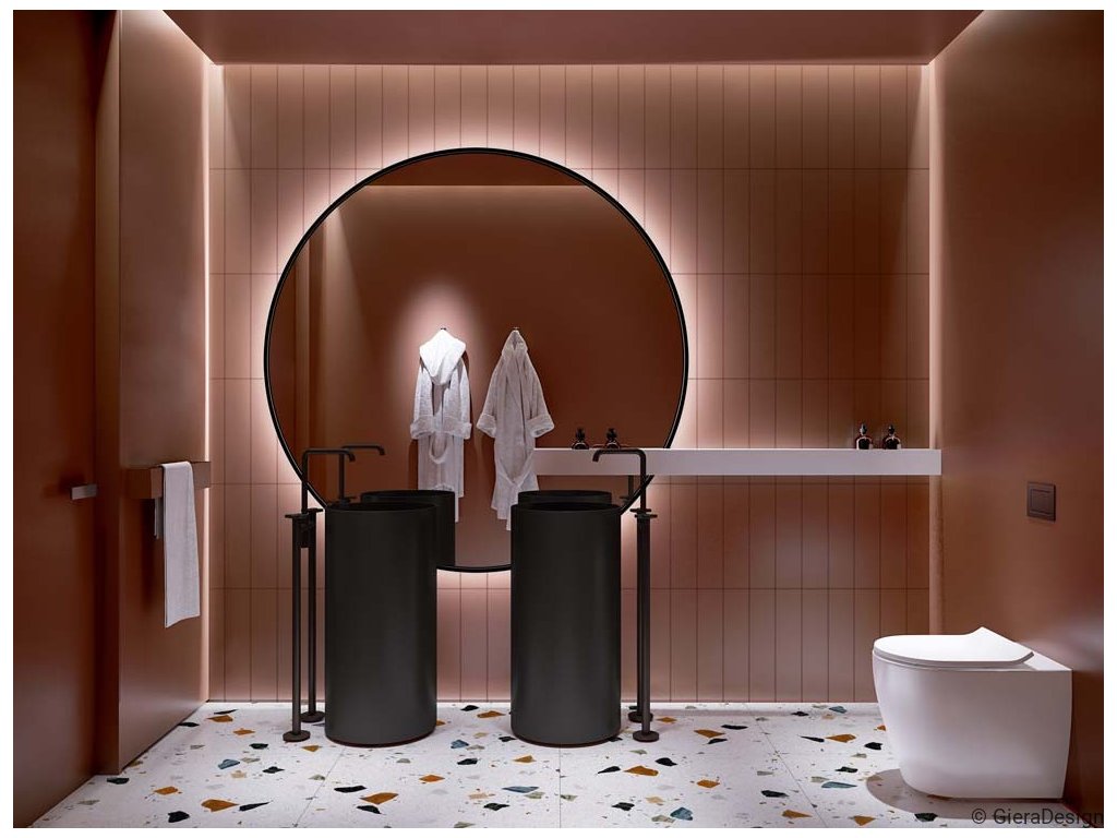 - Napájanie: IP68, 12V, integrované, skryté za zrkadlovou plochou.