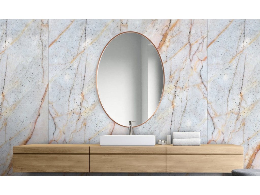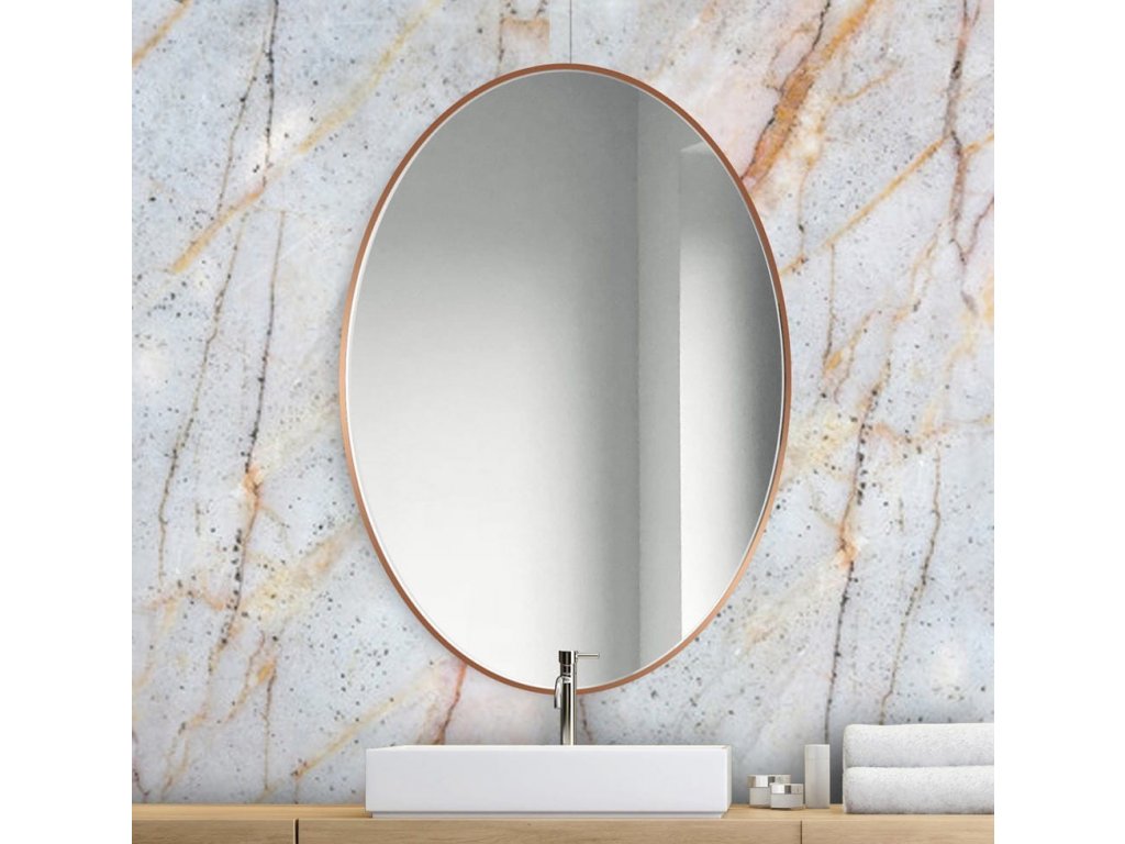 Dokonalé oválne medené zrkadlo zaujme nadčasovou jednoduchosťou a kvalitou spracovania. Vyhotovené je vo veľmi úzkom medenom ráme, ideálne pre interiéry v modernom, škandinávskom alebo priemyselnom štýle.Rám zrkadla je vyrobený z vodeodolnej lakovanej MDF. Je chránené pred korozívnym účinkom vlhkosti - vhodné i do kúpeľne. V zadnej časti zrkadla sú namontované úchytky na zavesenie.