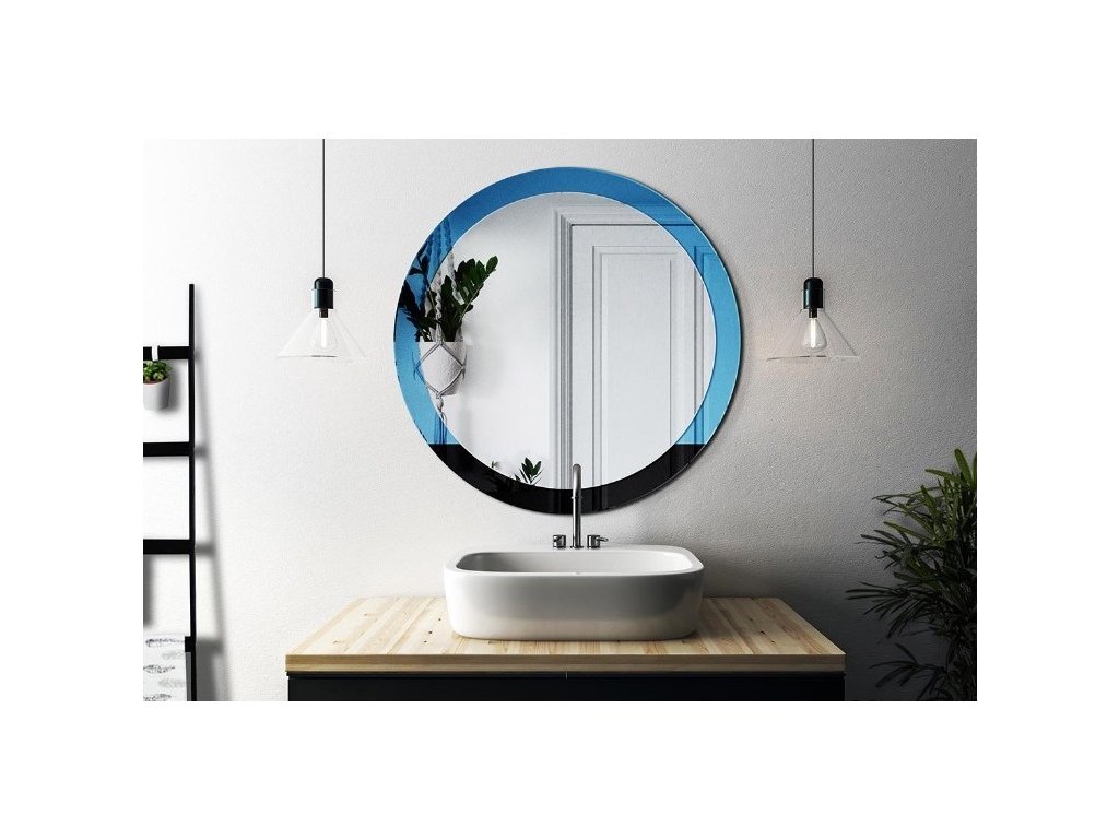 Krásne zrkadlo s dvojfarebným rámom vhodné pre moderný interiér, ideálne aj pre interiér zariadený v eklektickom štýle. Vhodné do obývacej izby, jedálne, spálne či do kúpeľne.Zrkadlo vyrobené z troch lepených prvkov. Rámček dvoch farieb: väčšia časť tvorí modré zrkadlo, menšiu čierne.